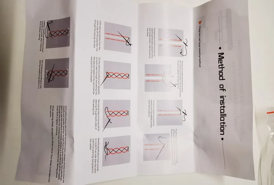 Хорошая вещь, качество радует, приятная на ощупь, за пару часов обшил, рекомендую снять руль для удобства. Только сначала клемы с аккумулятора снять, подушка стрельнуть может.