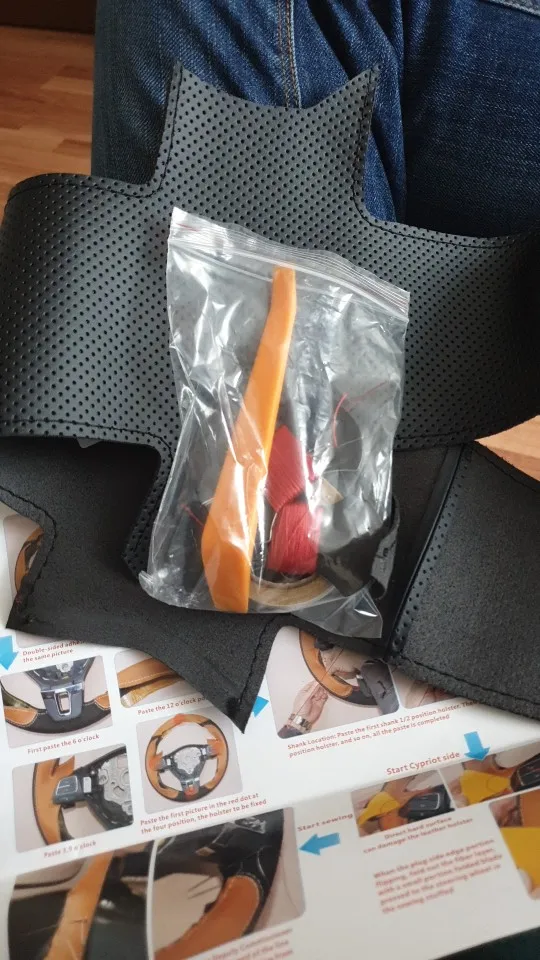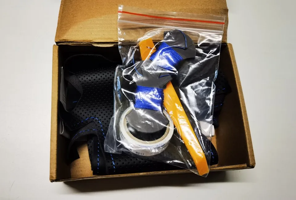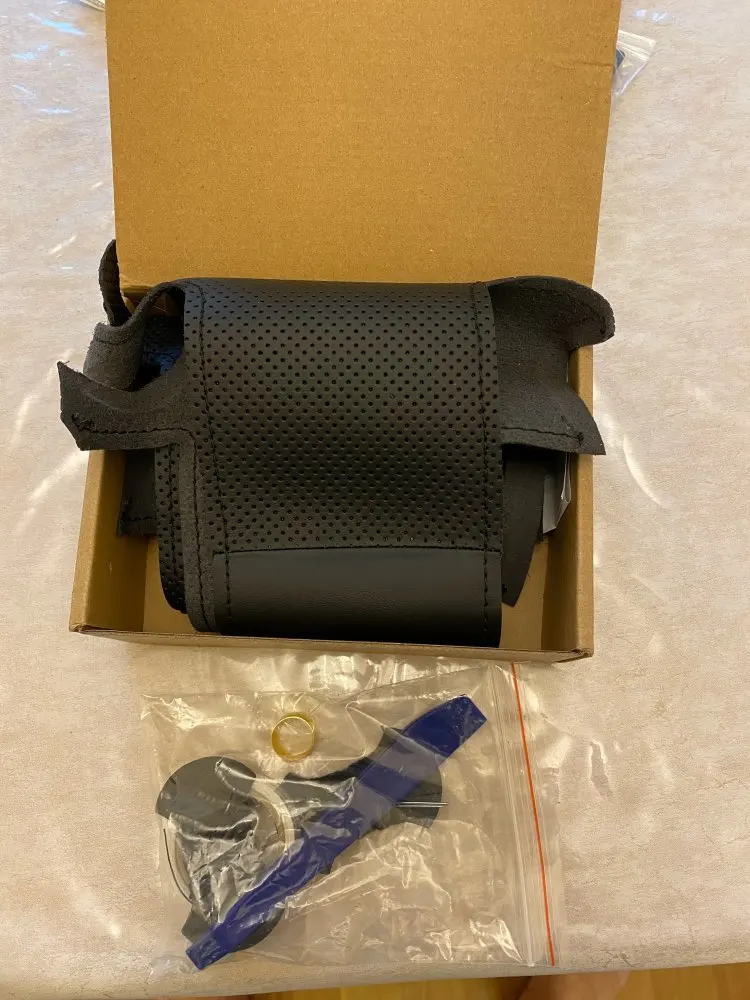 Первый раз забирал посылку из постомата...занятно)) коробочка пришла чуть мятая, но не критично, оплётка качественный кож зам, перетягивал на снятом руле, иначе можно сойти с ума. Получилось весьма прекрасно, все по размеру как надо. Теперь посмотрим сколько походит