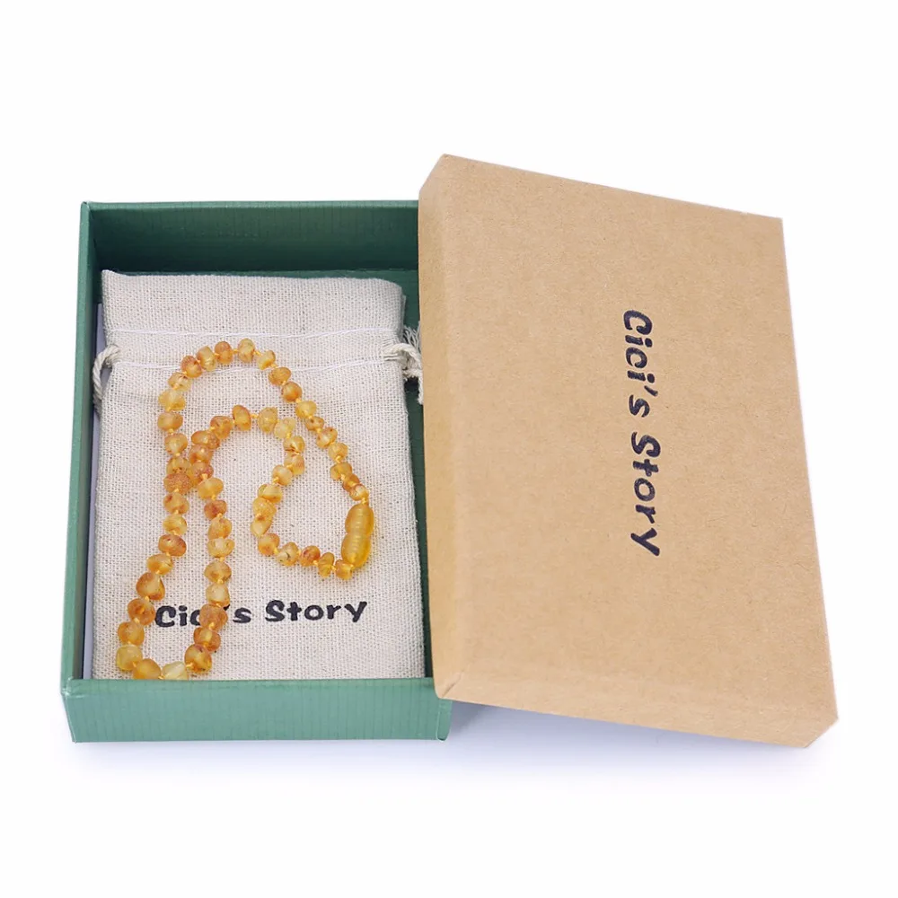 Янтарные ожерелья для прорезывания зубов сделаны для ношения, а не для жевания; Снимите Янтарное ожерелье для прорезывания зубов, когда ваш ребенок будет без присмотра, например, в ближайшее время.
