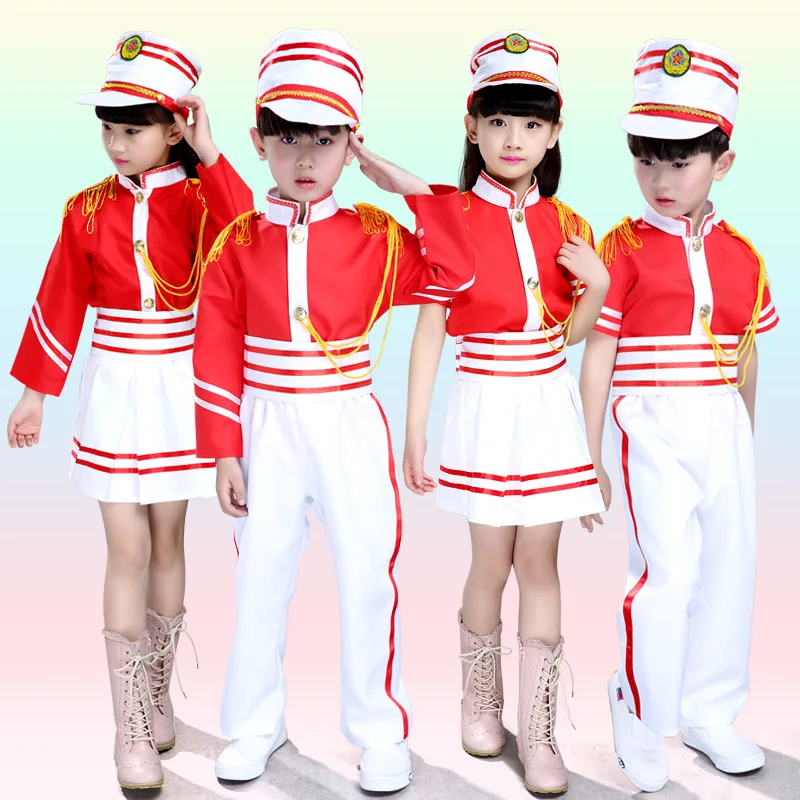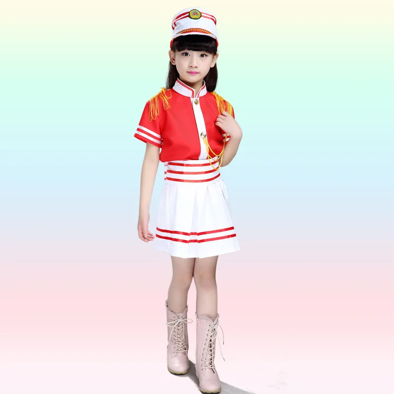 Детский костюм для команды барабанов Детская школьная форма для сцены Детский костюм с изображением барабанчика топ + юбка/штаны + шапка 18