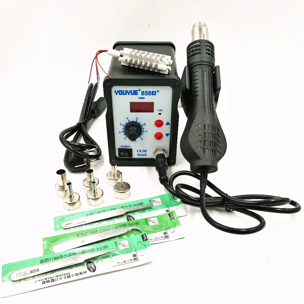 Паяльная станция YOUYUE 858D, строительный фен с ESD мощностью 700 Вт + 6 воздушных насадок + нагревательный сердечник с паяльником