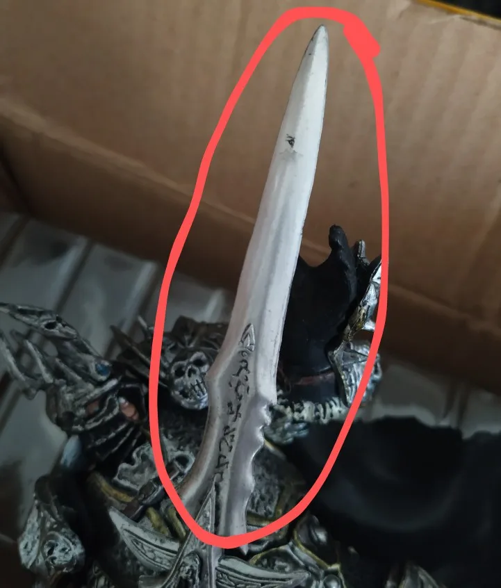 Качество пластика приемлемо . Но меч зафиксировать никак нельзя он тупо катаеться по ладоне . Да и плюс руки расположение капец неправильное такое ощущение что артас смотрит на свою ладонь а меч там с права где та катается капец да и если смотришь в глаза ведешь не синии стёкла а месево из красок причём чёрного и бежевого.и И да по фото видно что он в упаковке и да я его распаковывал но решил убрать обратно поскольку это подарок .