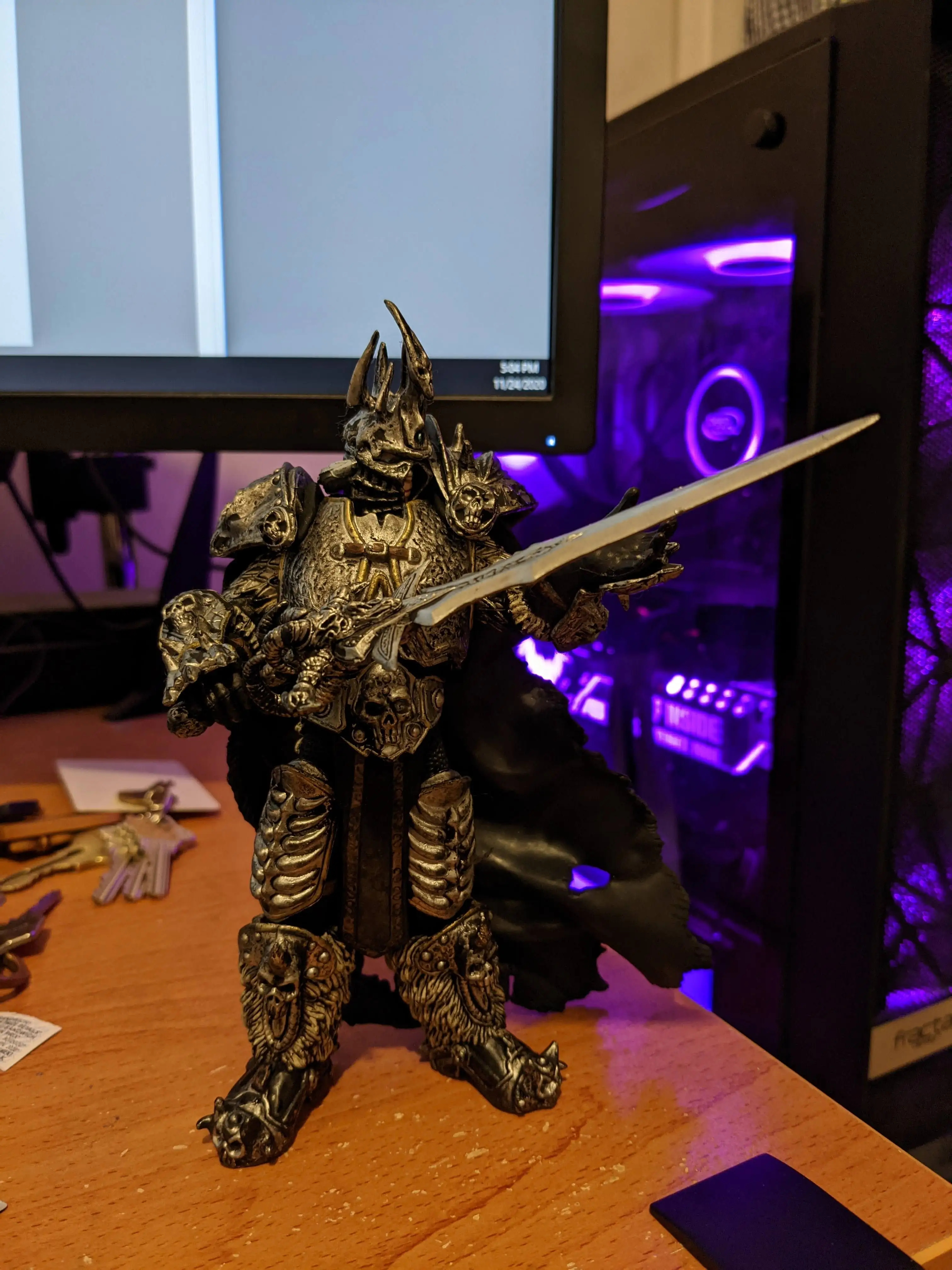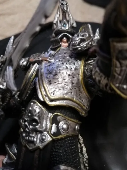 Фигурка хорошая, качество за свою цену нормальное, но 4 звёзды за покрас. Глаза можно было выделить голубым цветом лучше и окрас кожи, Артас - лич, он не живой, кожа должна быть бледной как у мертвеца, а не нормального оттенка.