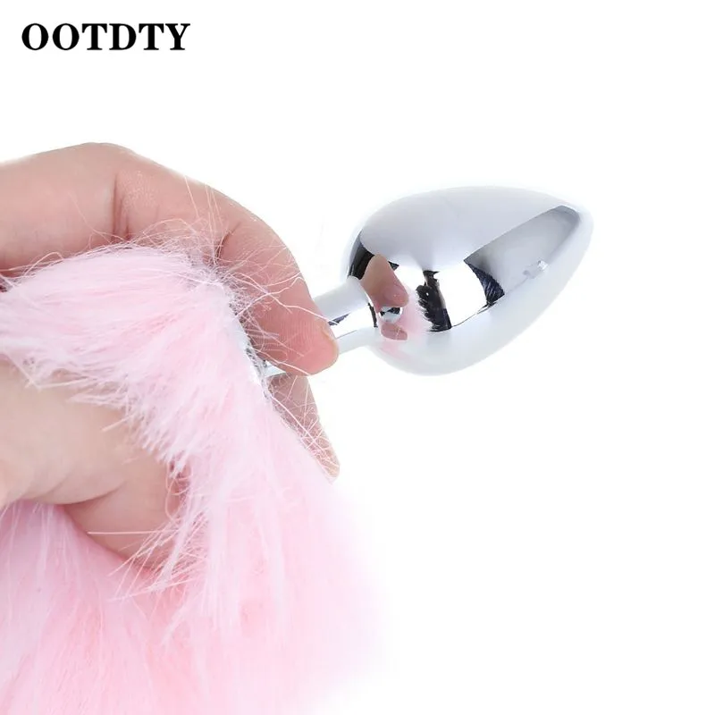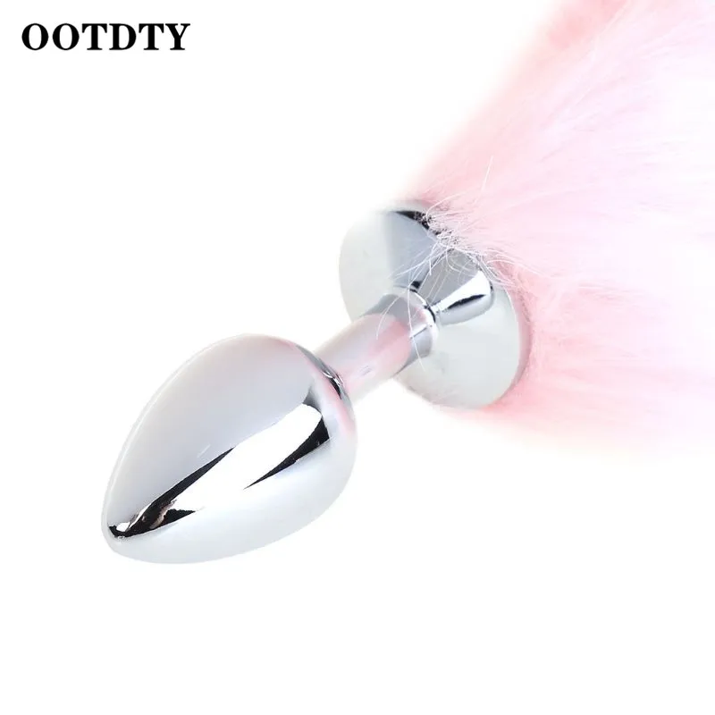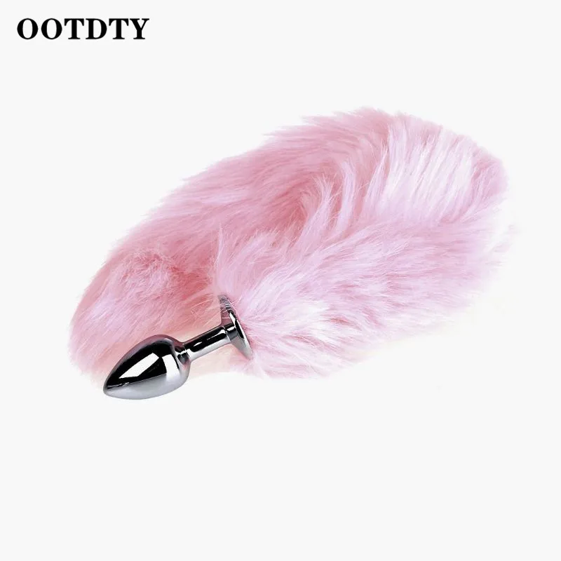 Анальная пробка 35 см, Анальная пробка, анальные игрушки для мужчин, романтика, товары для любви для взрослых, металлическая Анальная пробка с розовым лисьим хвостом, секс-игрушка, Прямая поставка