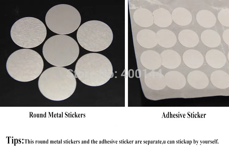Здесь у нас есть круглые металлические наклейки для теней, румян, бронзаторов и порошков, которые не предназначены для магнитных палитр. Просто очистите и приклейте на заднюю часть сковородок для сильного сцепления, чтобы предотвратить движение продуктов. Если вы хотите, свяжитесь со мной.