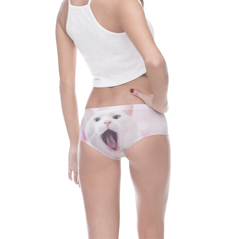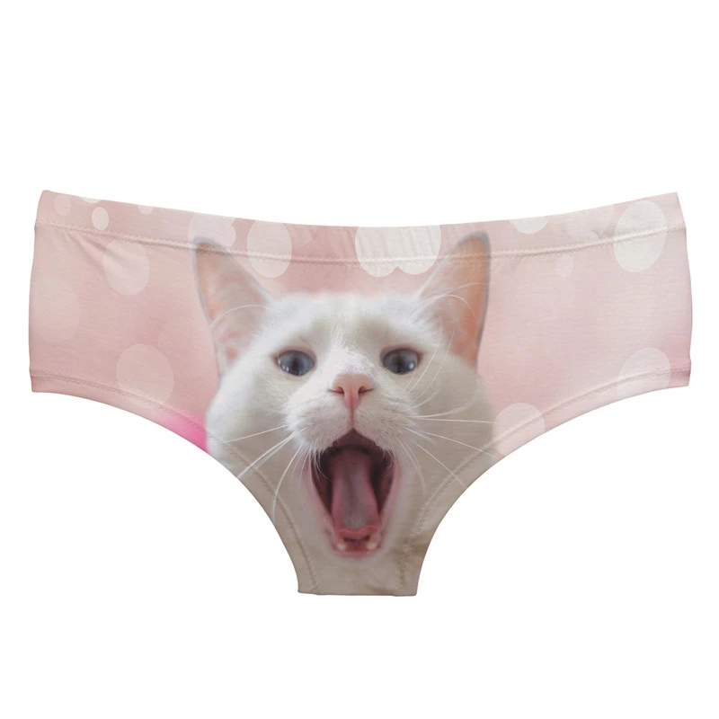 Женское нижнее белье, пикантные трусики с 3D принтом в виде кричащей белой кошки, трусики, женское нижнее белье
