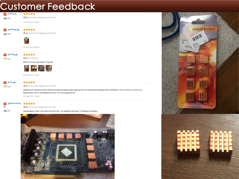 100% абсолютно новый и высококачественный медный RAM радиатор.Отлично подходит для высокопроизводительных или перегруженных систем. Материнская плата DDR VGA RAM Memory IC чипсет .......Рассеивает тепло RAM, улучшая его производительность.Эффективный размер подходит на все материнские платы.Термальная клейкая лента высокой проводимости.Размер: 13x12x4 мм.Вес: 8 шт. x 5g