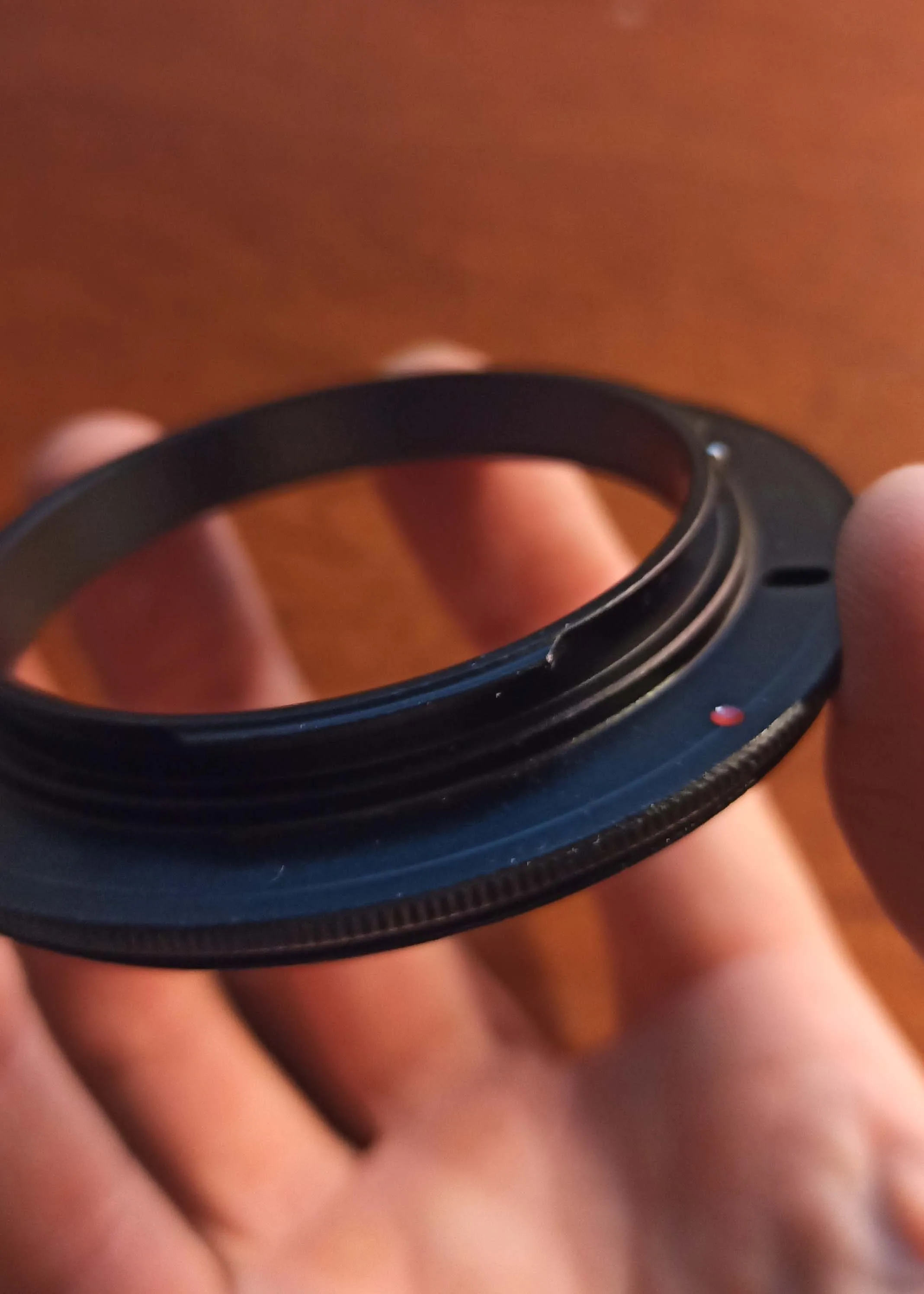 Прочный металлический адаптер. Легко крепится к корпусу dslr. Prelim macro Фантастический! Рекомендуем продавцу.