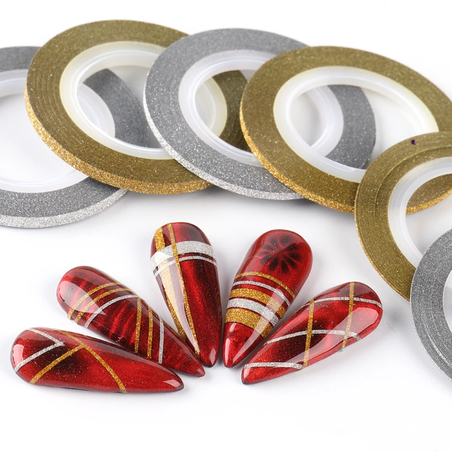 Лента с блестками для ногтей, 1 мм, 3 мм, Золотой Серебряный ноготь, 1 рулон, линии, полосы