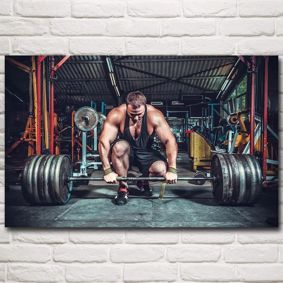 Плакаты FOOCAME мужские, тяжелая атлетика, бодибилдер, спортивные мышцы, шелковые художественные плакаты и принты, картины для тренажерного зала, настенные украшения, картины