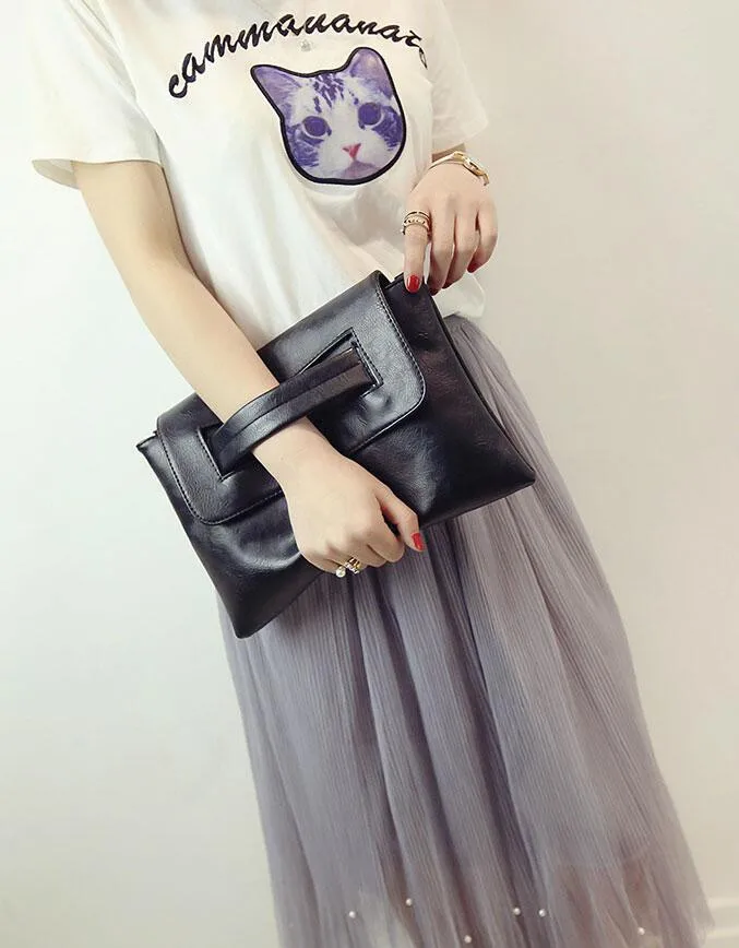 Женские кожаные сумочки ANAWISHARE, дневные клатчи, черные сумки через плечо, дамские вечерние сумки-конверты