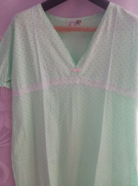Хорошая сорочка. Мягкая, но запашок краски конечно не айс. Постирала вроде получше. Брала на беременность, можно было бы размер и побольше, ну вроде влезла. Немного тянется.