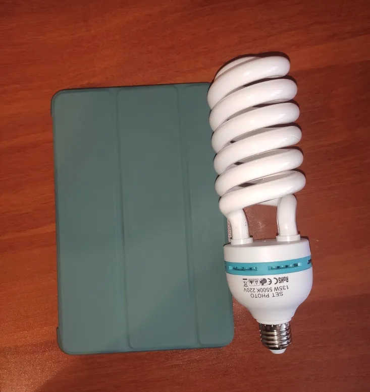 Ставлю 5 за доставку и упаковку, описание не точное) получил за 1.5 недели, не думал что они будут такими огромными, фото для примера есть(рядом планшет Huawei matepad pro 10.8"), заранее обратите внимание на это. Светят в общем то неплохо, но не 135W это точно, фотка есть с потреблением энергии 4 лампами(200w в общем/50w одна лампа). Да и греются лампы как батареи, за 3 минуты в софтбоксе температура просто жесть, мерял пирометром, около 60-70 градусов... Наверное лучше куплю лампочки на 20w с 6500к в магазине, они не такие огромные, а светят почти так же. Эти унесу в гараж и тепло и светло будет))