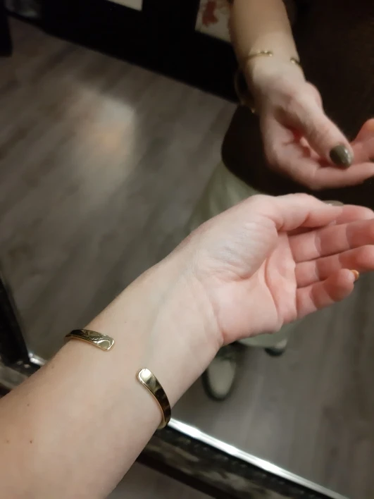 соответствует описанию. на узкую руку-думала, что будет сползать с руки, но нет-все идеально. очень красивый и модный браслет. дошло за 2 недели.