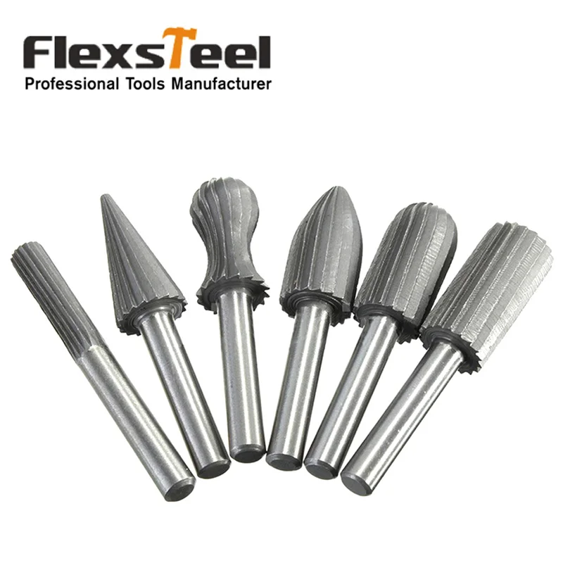 6 шт. высокоскоростной стальной 14 "6 мм хвостовик вращающийся Рашпиль набор напильников Рашпиль резак набор сверл для алюминия и железа
