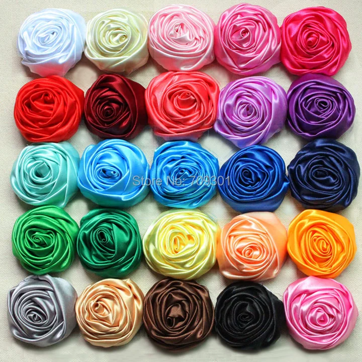 Атласная роза ручной работы "2,0 атласная Розетка цветок для девочек цветок аксессуары волос 24 цвета Бесплатная доставка