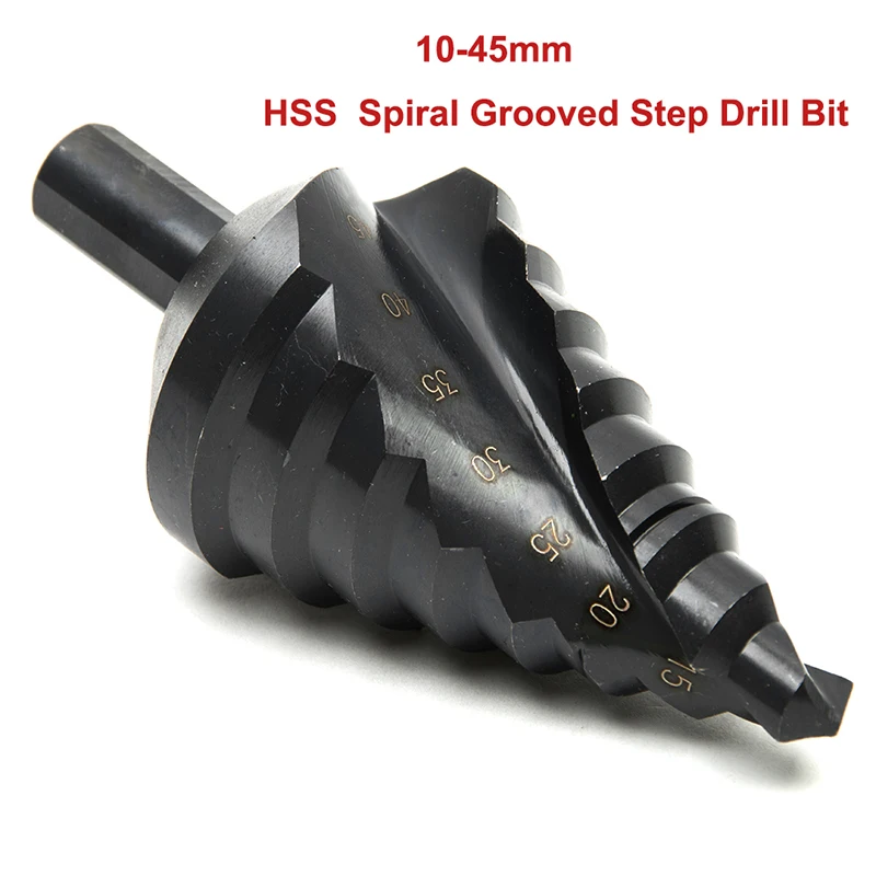 Спиральное ступенчатое сверло, быстрорежущая сталь с треугольным хвостовиком, 10-45 мм, для резки отверстий в металле, дереве, пластике