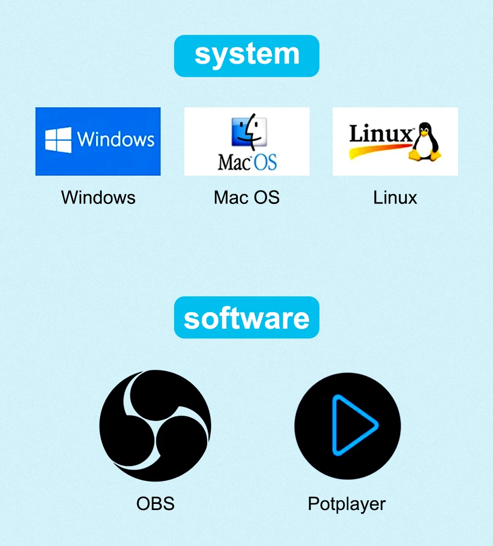 * Карта видеозахвата USB не работает сразу послеПодключен. Вам нужно открыть подключенное устройство в три ВечерниеНастройки программного обеспечения, а затем вы можете начать запись видео.* Это некоторые бесплатные ссылки на программное обеспечение, вы можете загрузить его и попробовать его на своем компьютере.Https://potplayer.en.softonic.com/Https://obsproject.com/Https://amcap.en.softonic.com/download