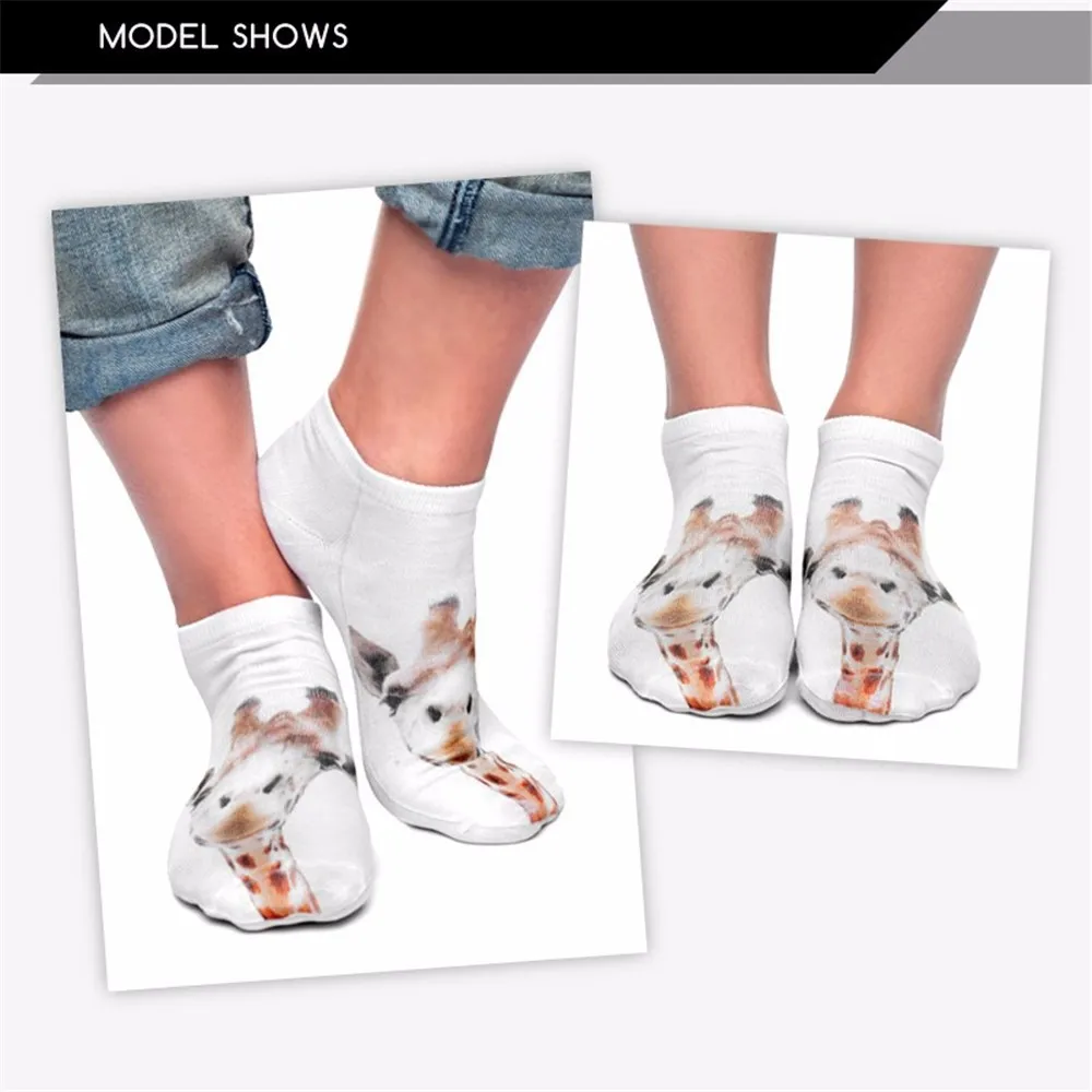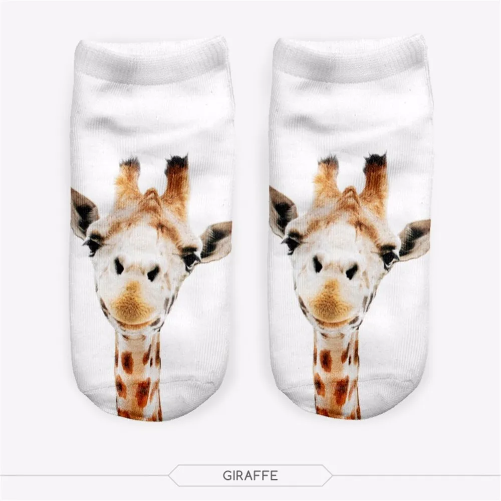Бесплатная доставка Meias 3D женские носки повседневные милые Harajuku Забавные Животные Жираф носки унисекс низкие короткие носки разные цвета