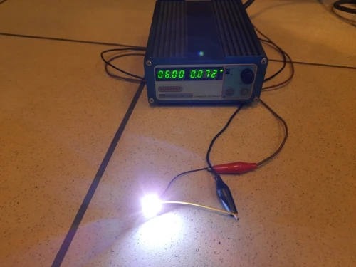 Хорошо получил, это 6 вольт с наименьшей частью в аноде, он очень холодный белый, по cons он более 0,7 Вт, чем 1,8 Вт, в 6 в, У меня 120 мА! LOL! (без звезд)