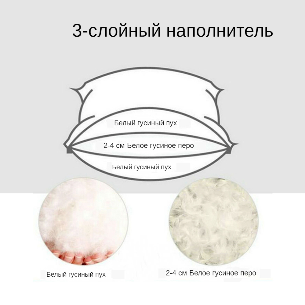 Подушка Ортопедическая с наполнителем из гусиного пуха, 100% хлопок, Питер Ханун