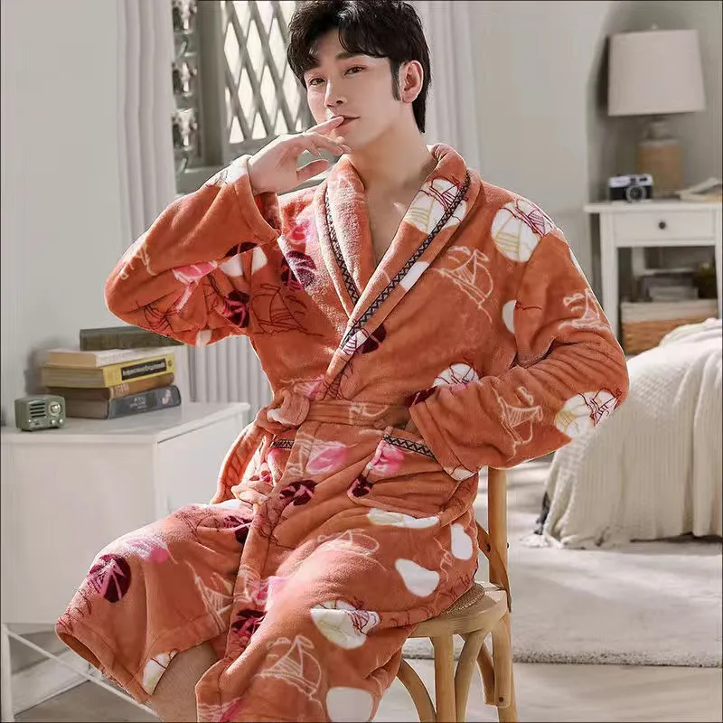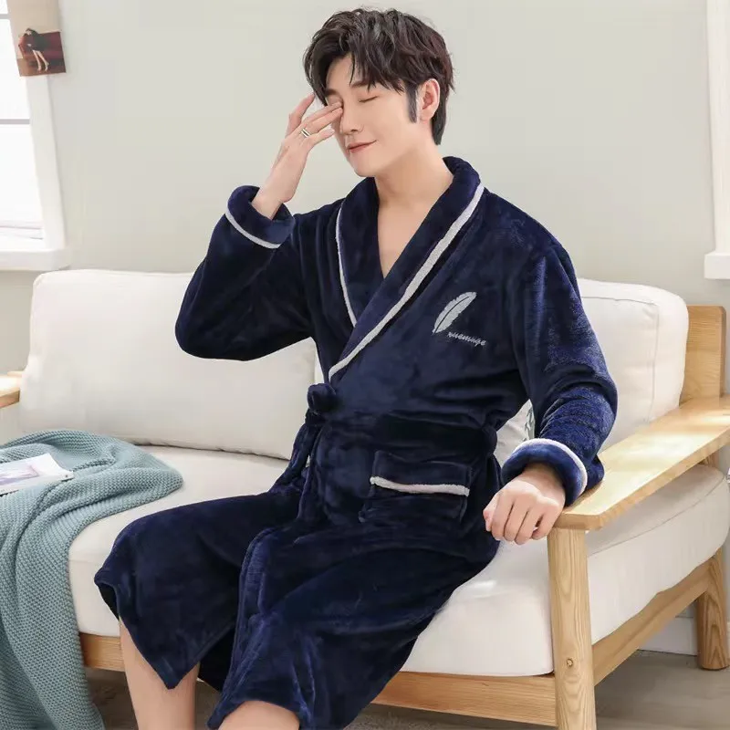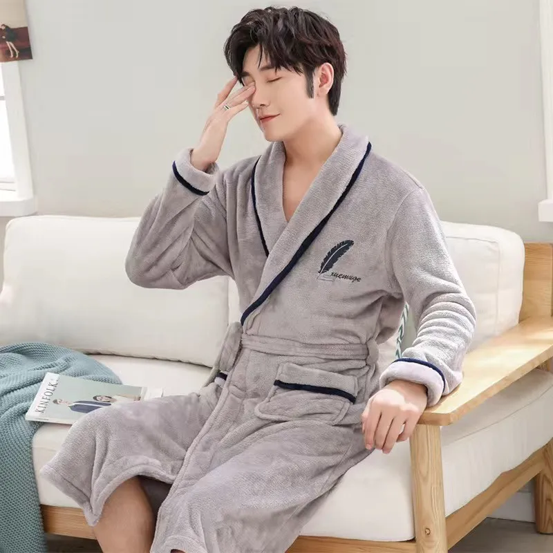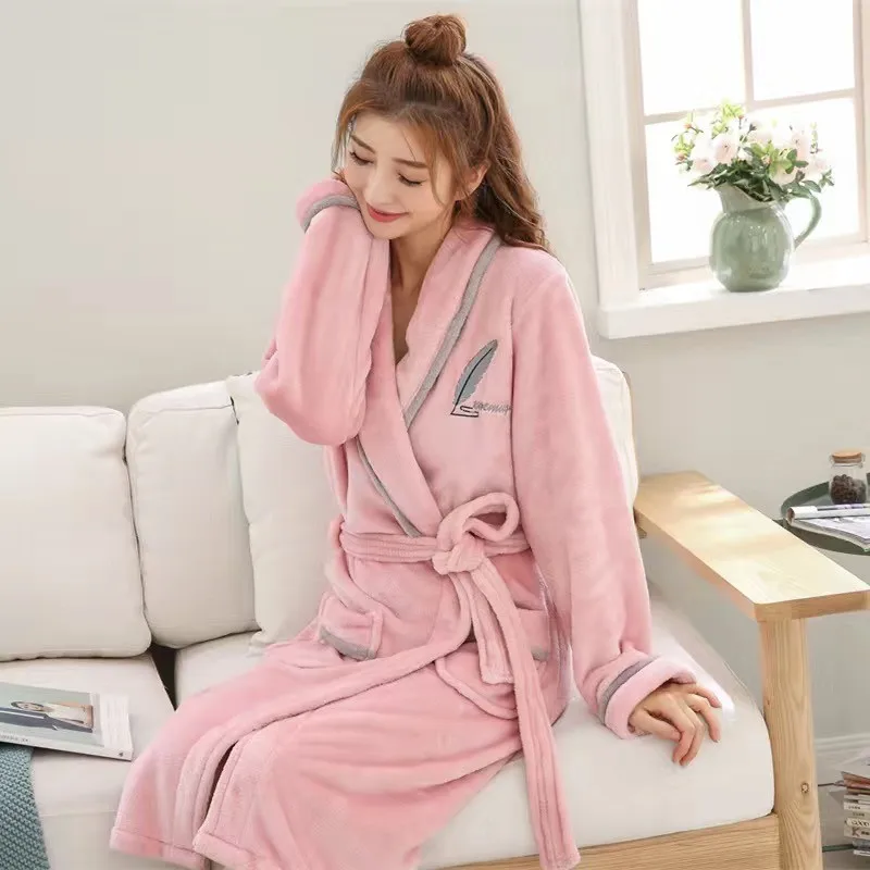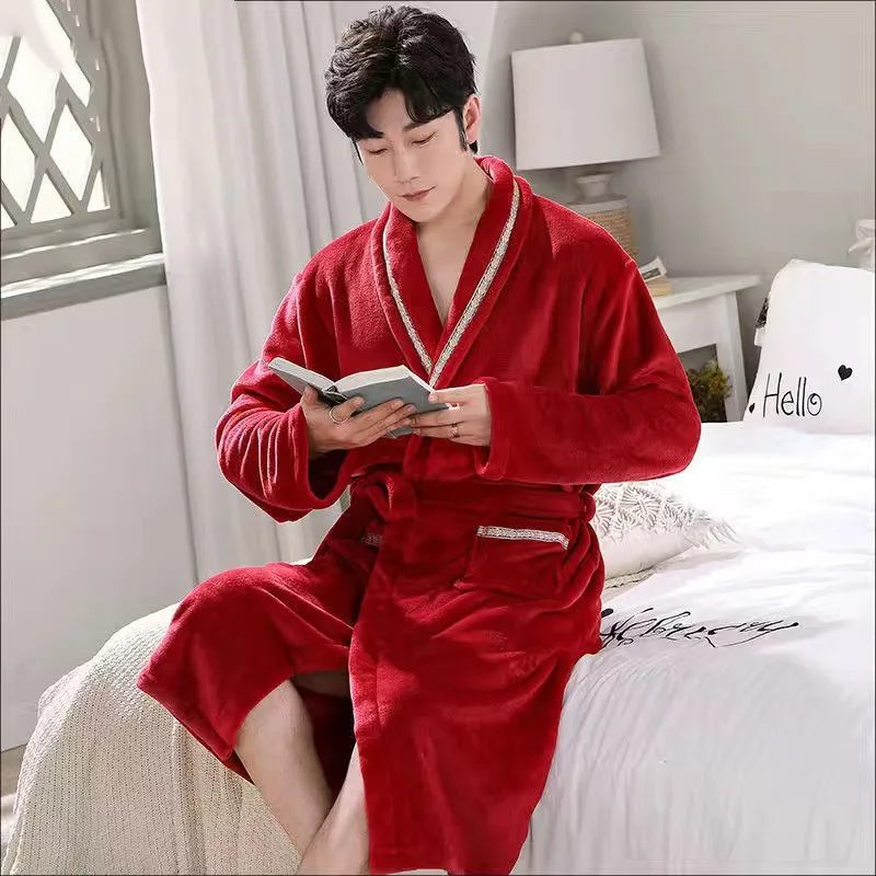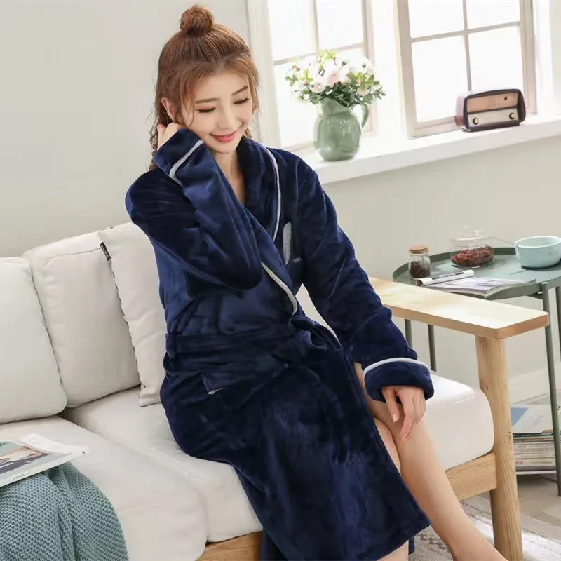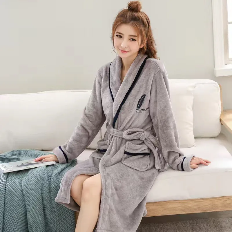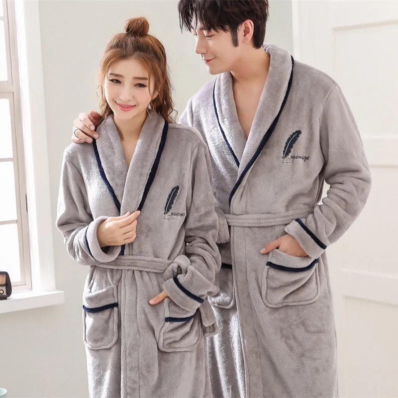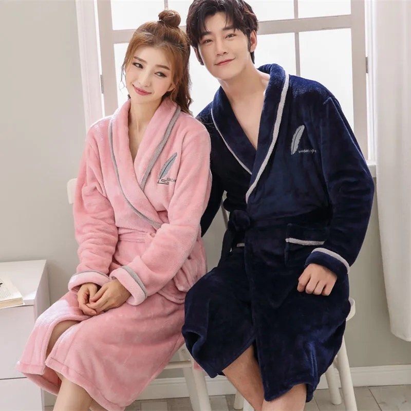Утолщенный фланелевый Халат-кимоно для пары, зимняя теплая одежда для сна, Женская ночнушка, мягкий флисовый халат кораллового цвета, домашняя одежда, ночная рубашка