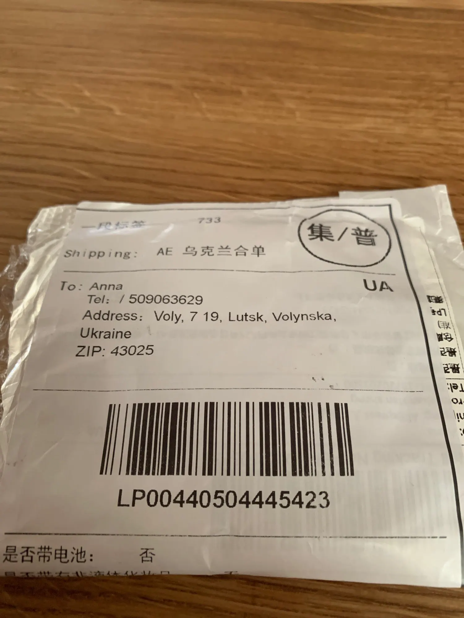 Посылка не получена.