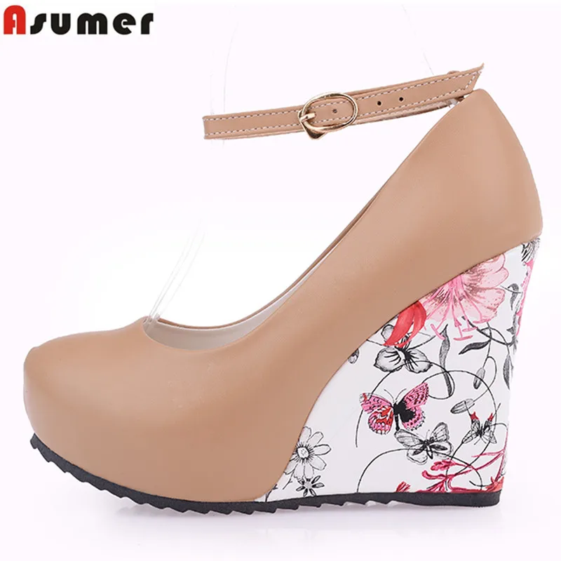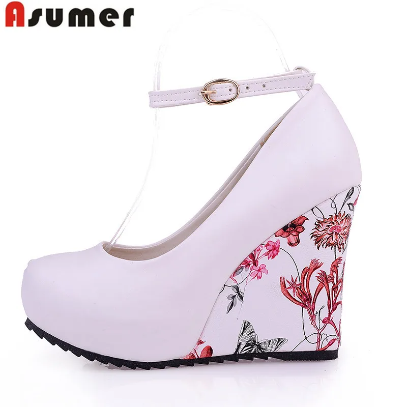 Женские туфли-лодочки на танкетке ASUMER, с цветочным принтом, летние, 2021