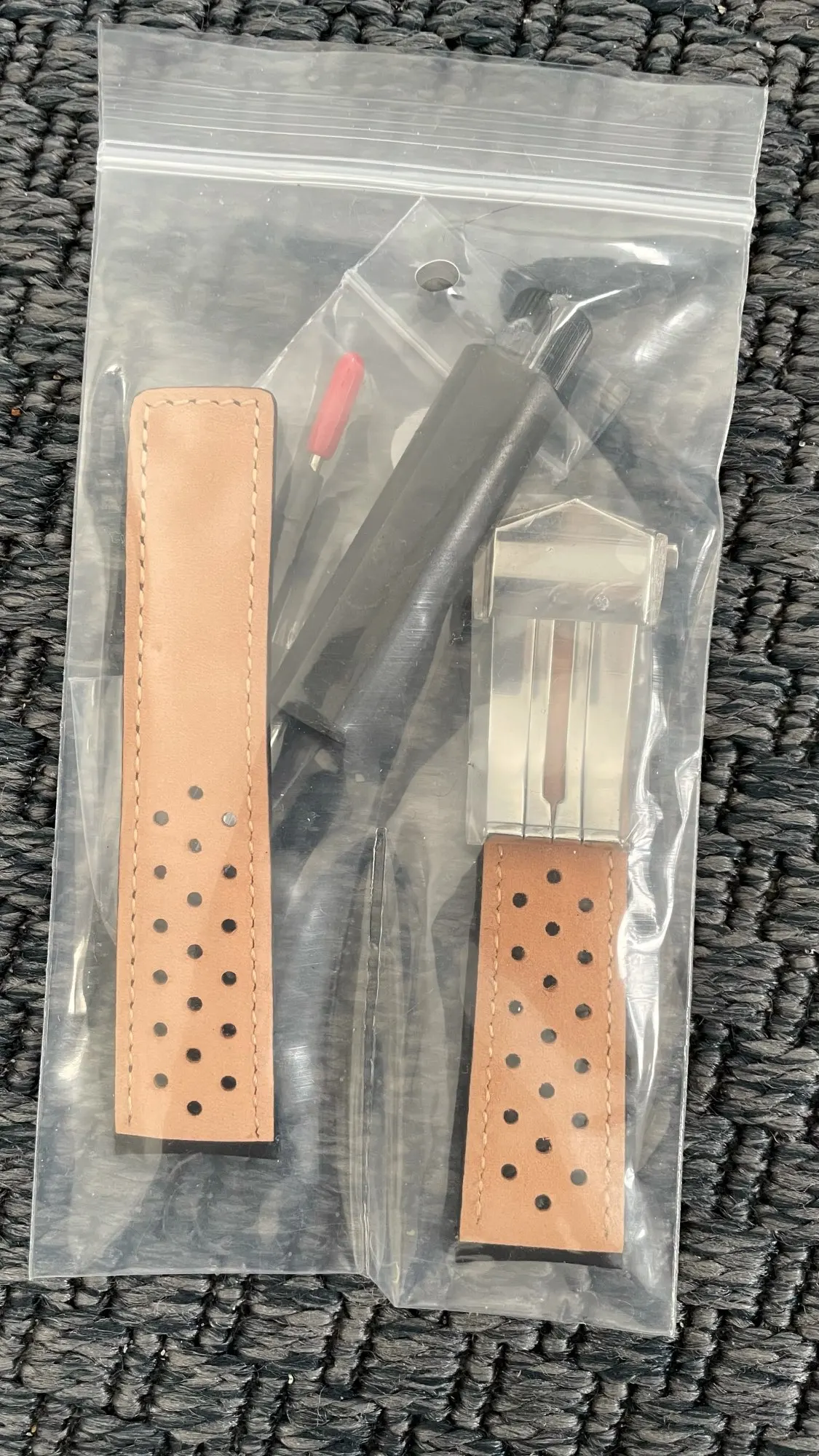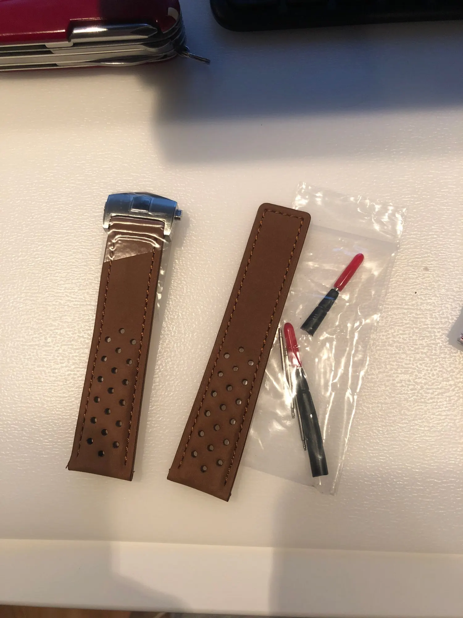 Похож на ремешок который был изначально на часах при покупке. Но этот не кожа как мне кажется. Посмотрим сколько прослужит . Старый ремешок прослужил 5 лет . Отвертка в комплекте , очень удобно с ней менять