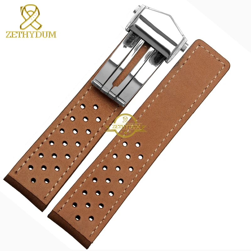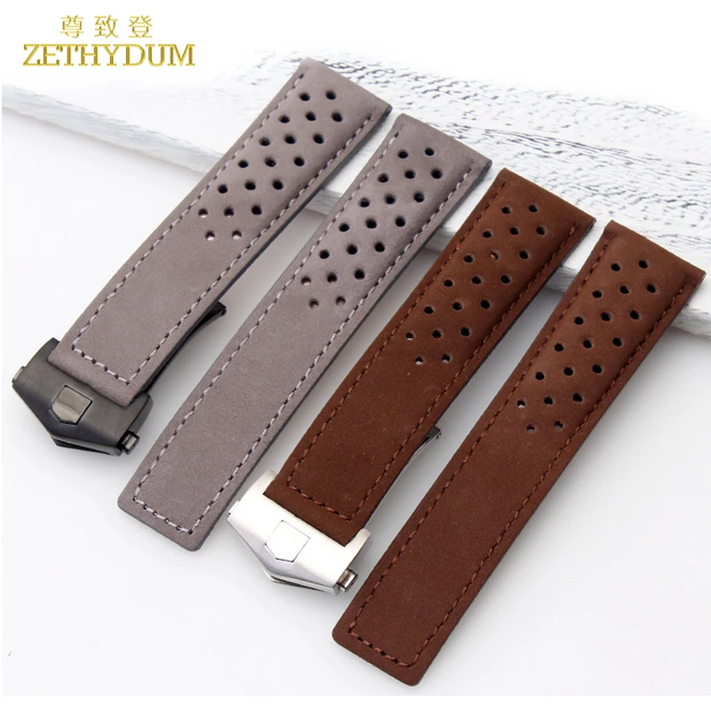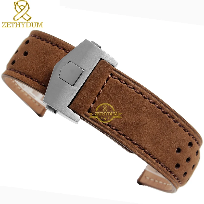 Ремешок из натуральной кожи для мужских наручных часов, браслет со складной пряжкой из нубука, 22 мм, аксессуары для часов