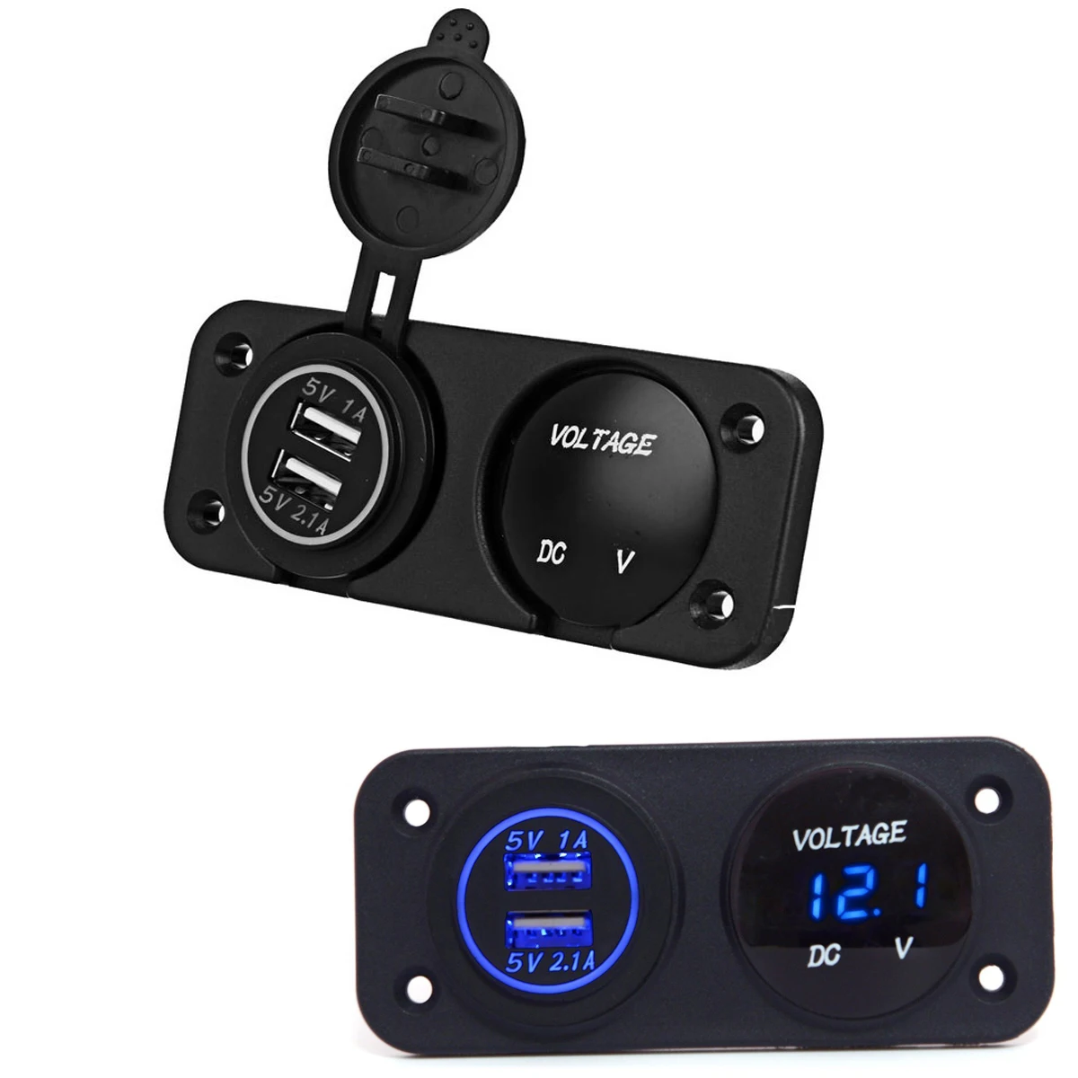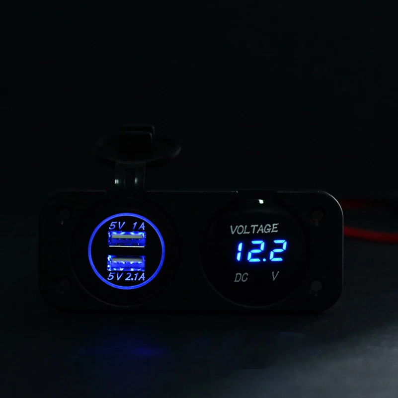 DC 12V - 24V светодиодный цифровой вольтметр + двойной USB разъем питания панель 2.1A1A USB зарядное устройство для автомобиля лодки Rv мотоцикл зеленый синий красный