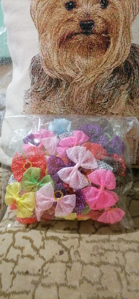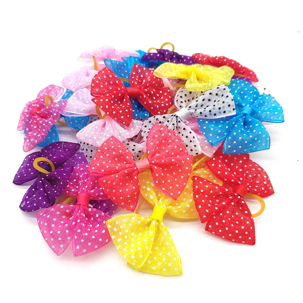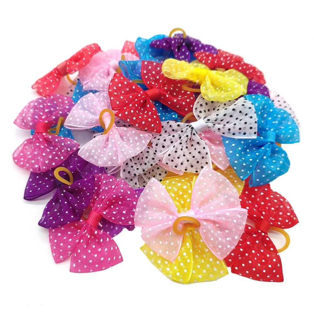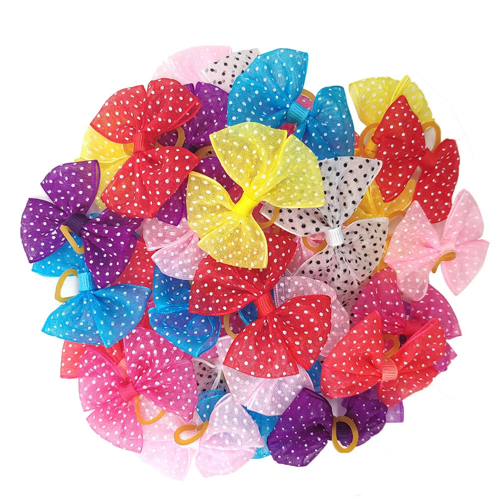 Товар:50 шт. в паре Новые разноцветные банты из собачьей шерсти из кружева лук резиновые ленты аксессуары для ухода за домашними животными товары милый подарок