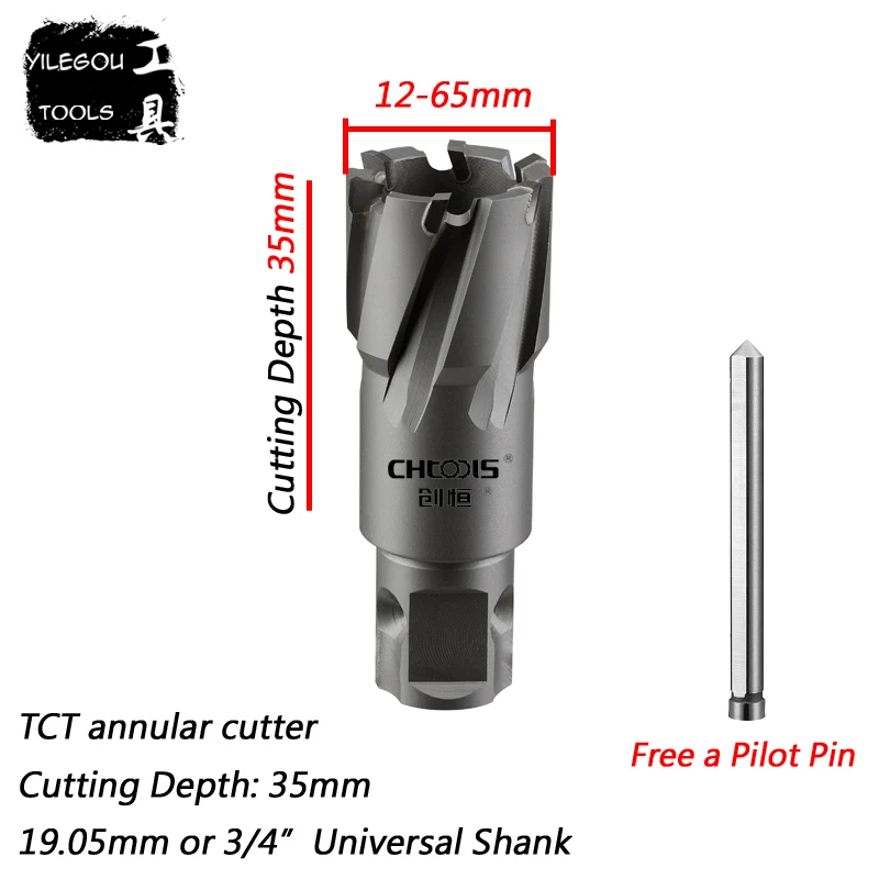 Кольцевой резак TCT диаметром 12-65 мм * 35 мм, универсальный хвостовик 34 дюйма, 22*35 мм, пустотелое сверло из твердого сплава для металла, глубина выреза 35 мм
