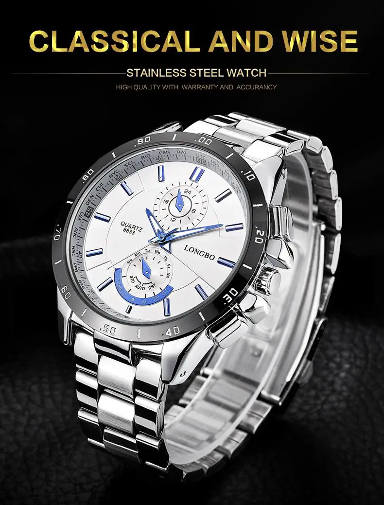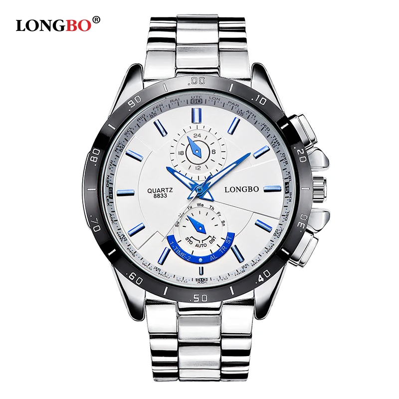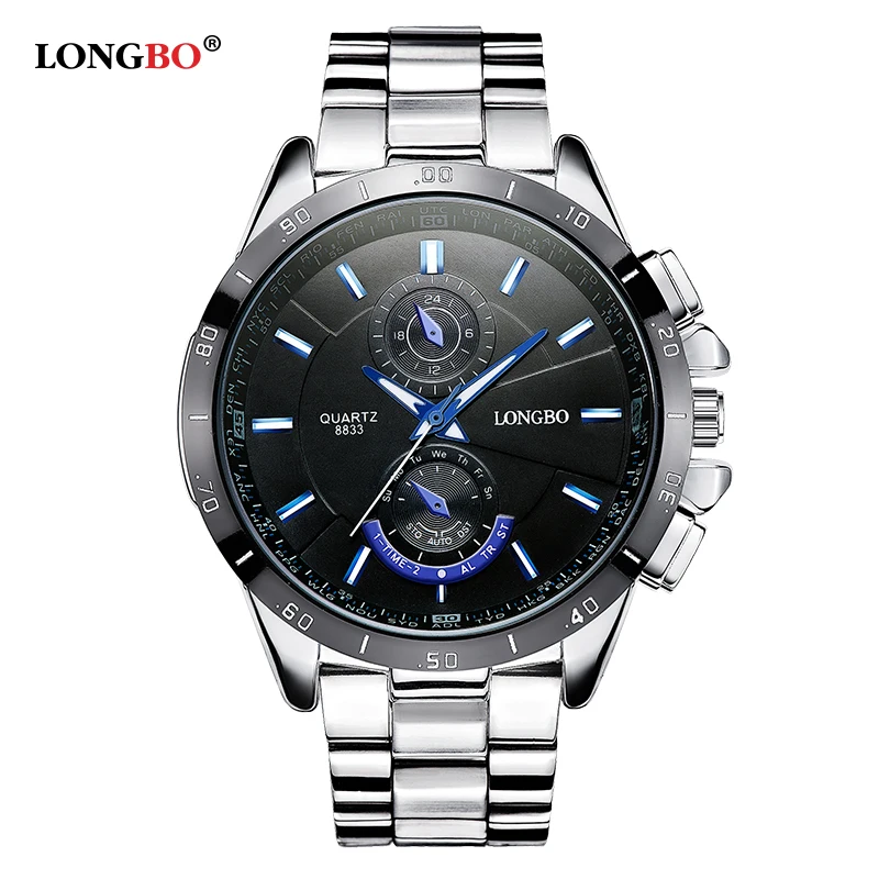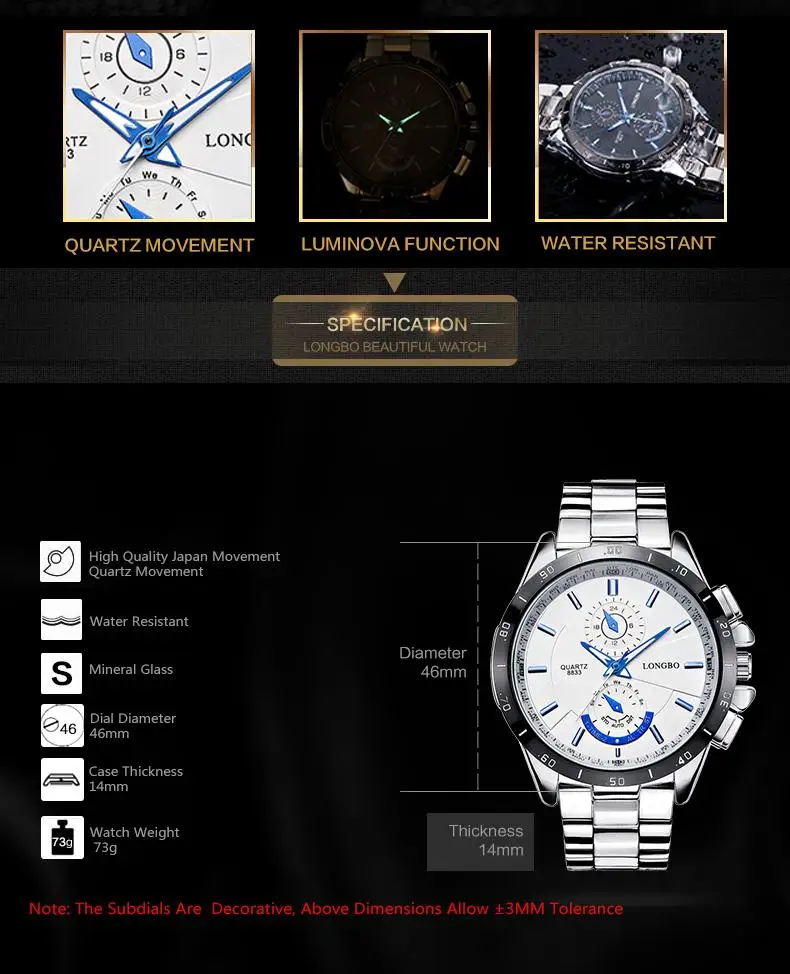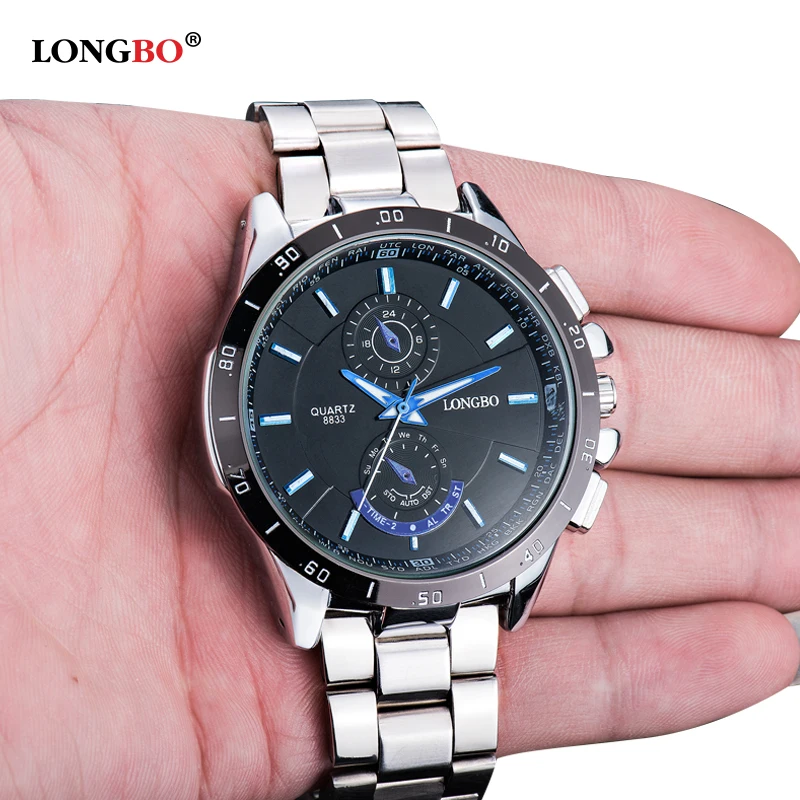 Часы наручные LONGBO Мужские кварцевые из нержавеющей стали, брендовые деловые наручные в стиле милитари, Sporst, 2016