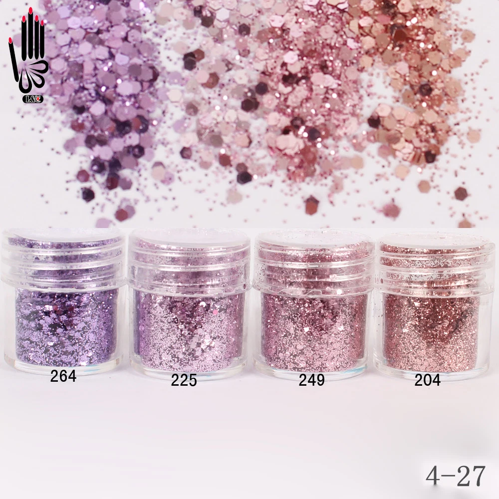 1 баночкакоробка, 10 мл, блестящая пудра для ногтей 3D светло-фиолетового и розового цвета, пудра с блестками для дизайна ногтей, 300 цветов, для гель-лака 4-27