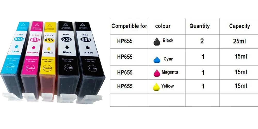 5 шт. Совместимость HP 655 HP 655 CMY bk картридж с чипом для HP Deskjet 3525 4615 4625 5525 6520 6525 6625