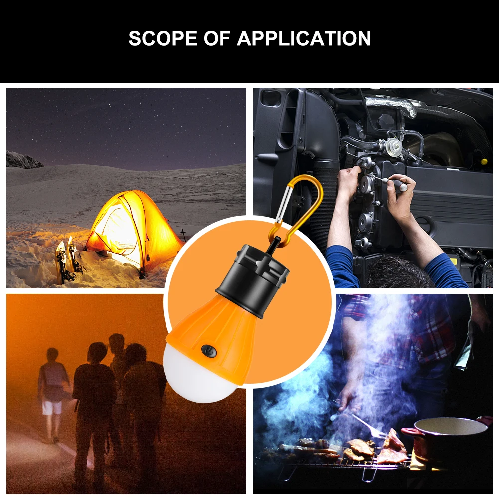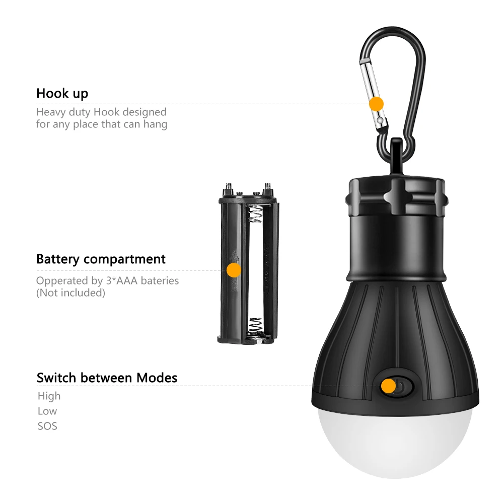 Портативный мини-фонарь для палаток, 3 светодиодных лампы, аварийная лампа, водонепроницаемый, подвесной фонарик с крюком свет для кемпинга, 4 цвета, использование 3 * AAA