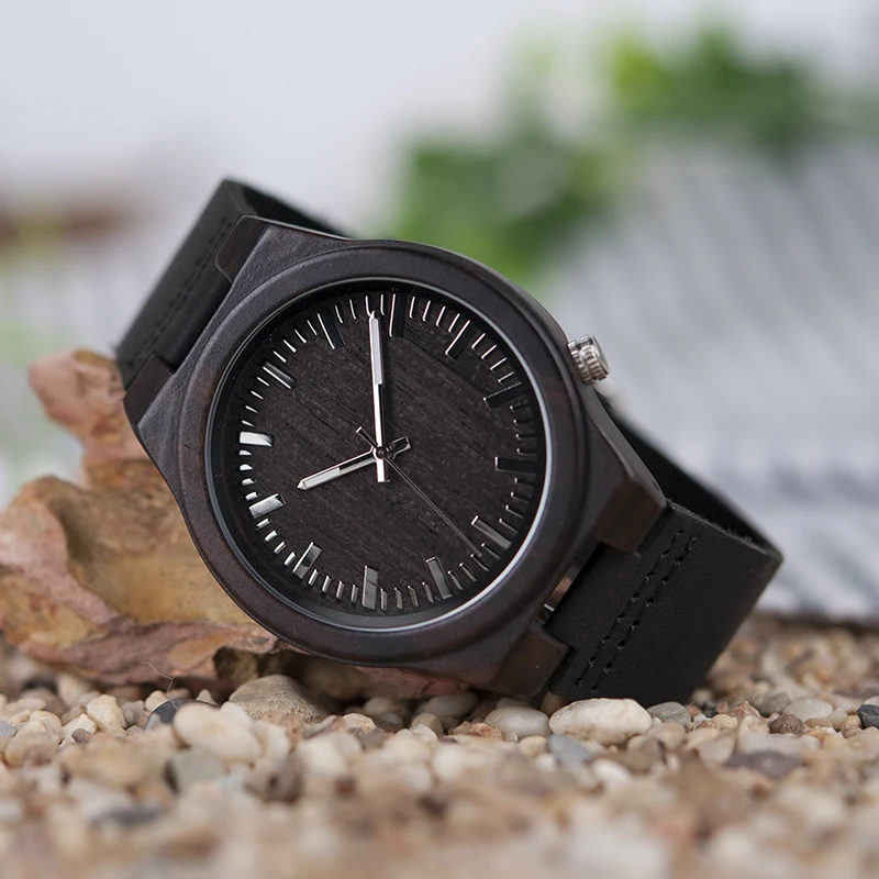 Наручные часы BOBO BIRD WB12 мужские, асимметричный дизайн, из черного дерева, с ремешком из мягкой кожи, в подарочной коробке, дропшиппинг, принимаем OEM