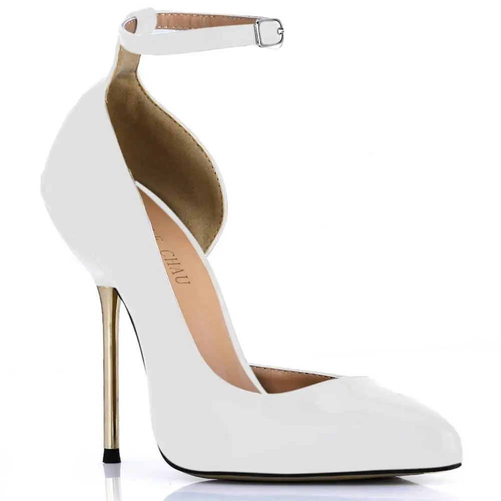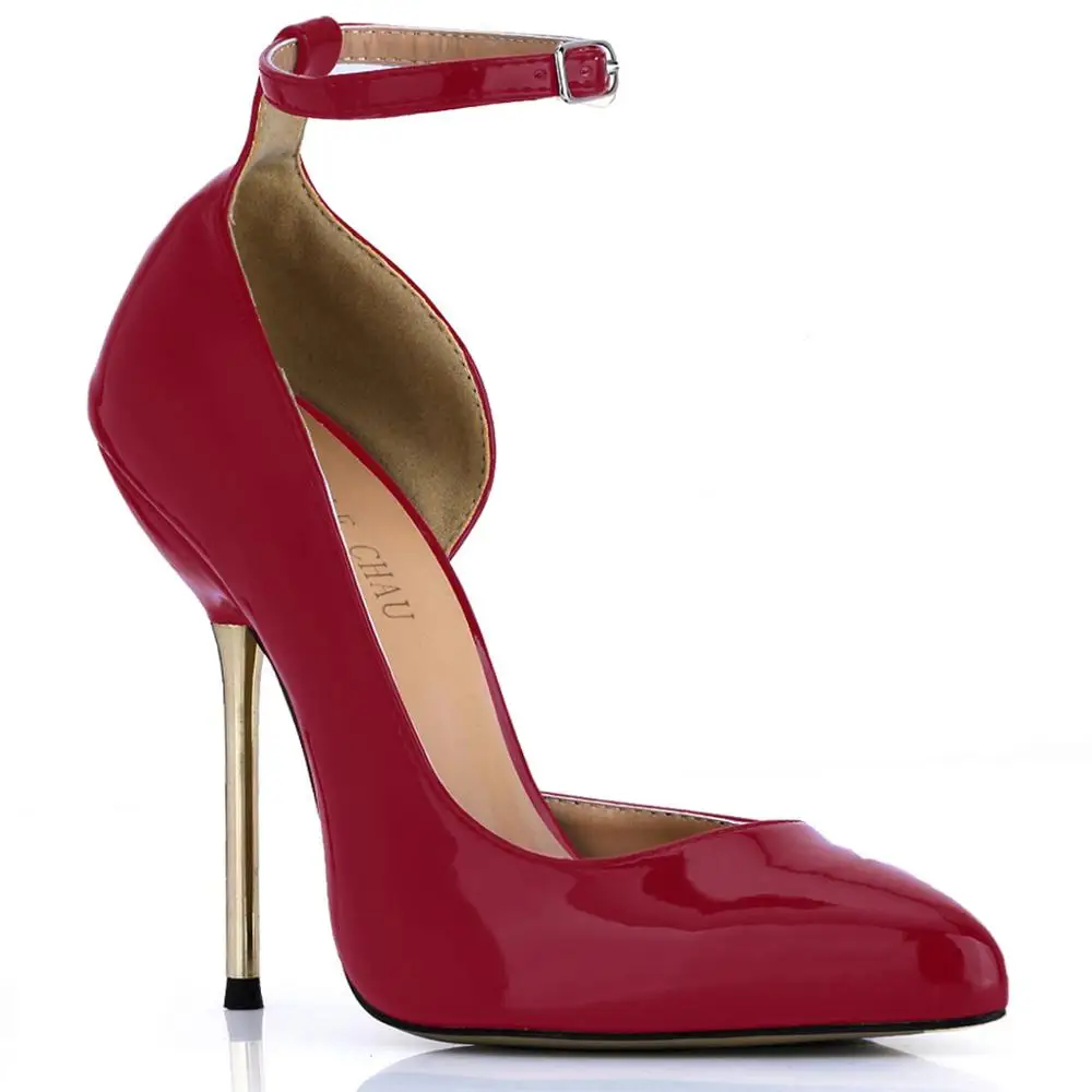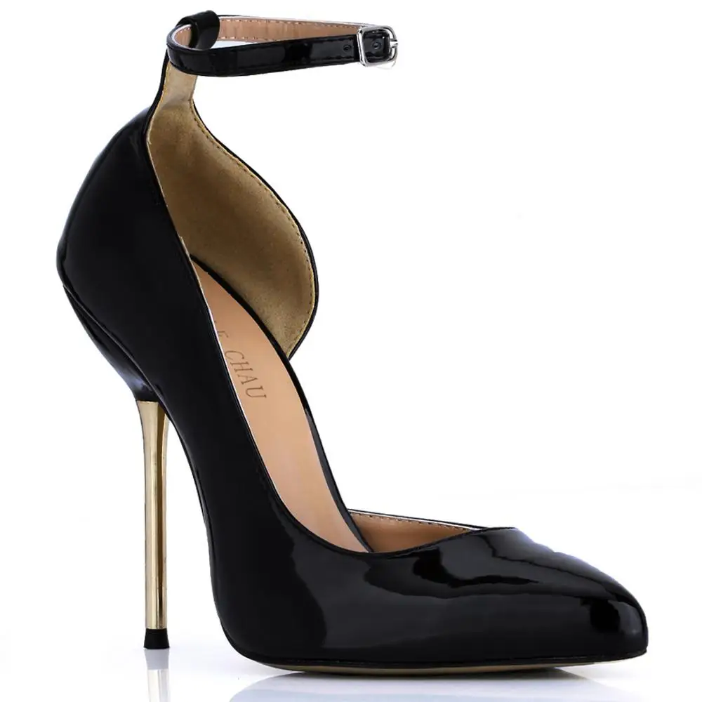 Женские лакированные туфли CHMILE CHAU, пикантные туфли-лодочки черного цвета, заостренный носок, высокий металлический каблук-шпилька, ремешок на щиколотке, черный цвет, 3845A-d1
