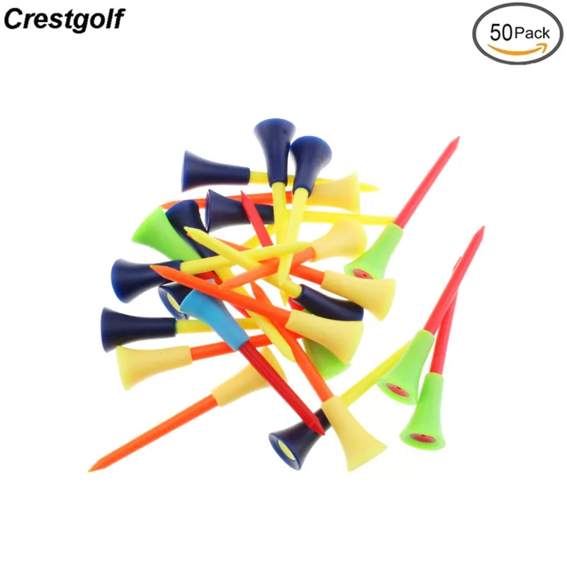 Crestgolf 83 мм70 мм54 мм многоцветные Пластиковые Тройники для гольфа, прочная резиновая подушка, топ для гольфа, аксессуары для гольфа 50 упак.