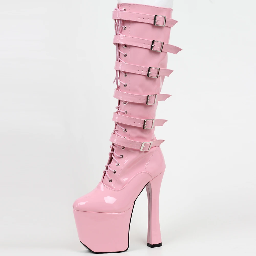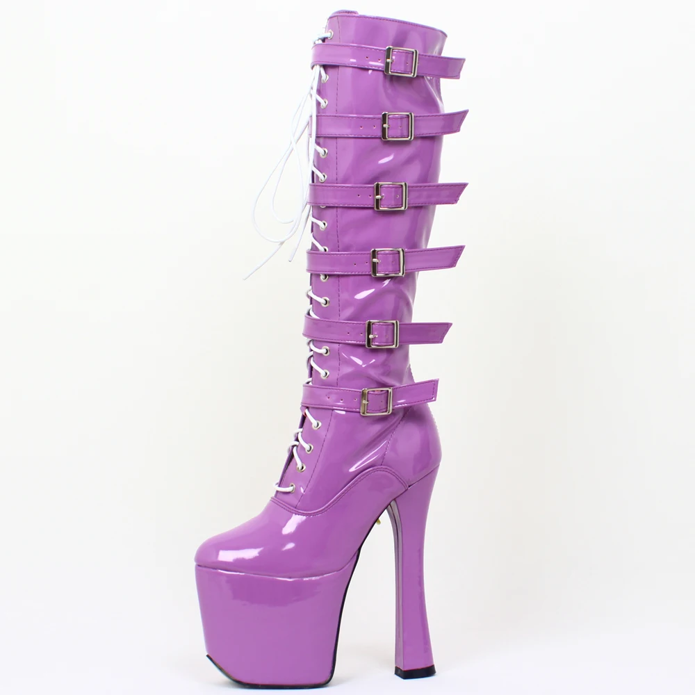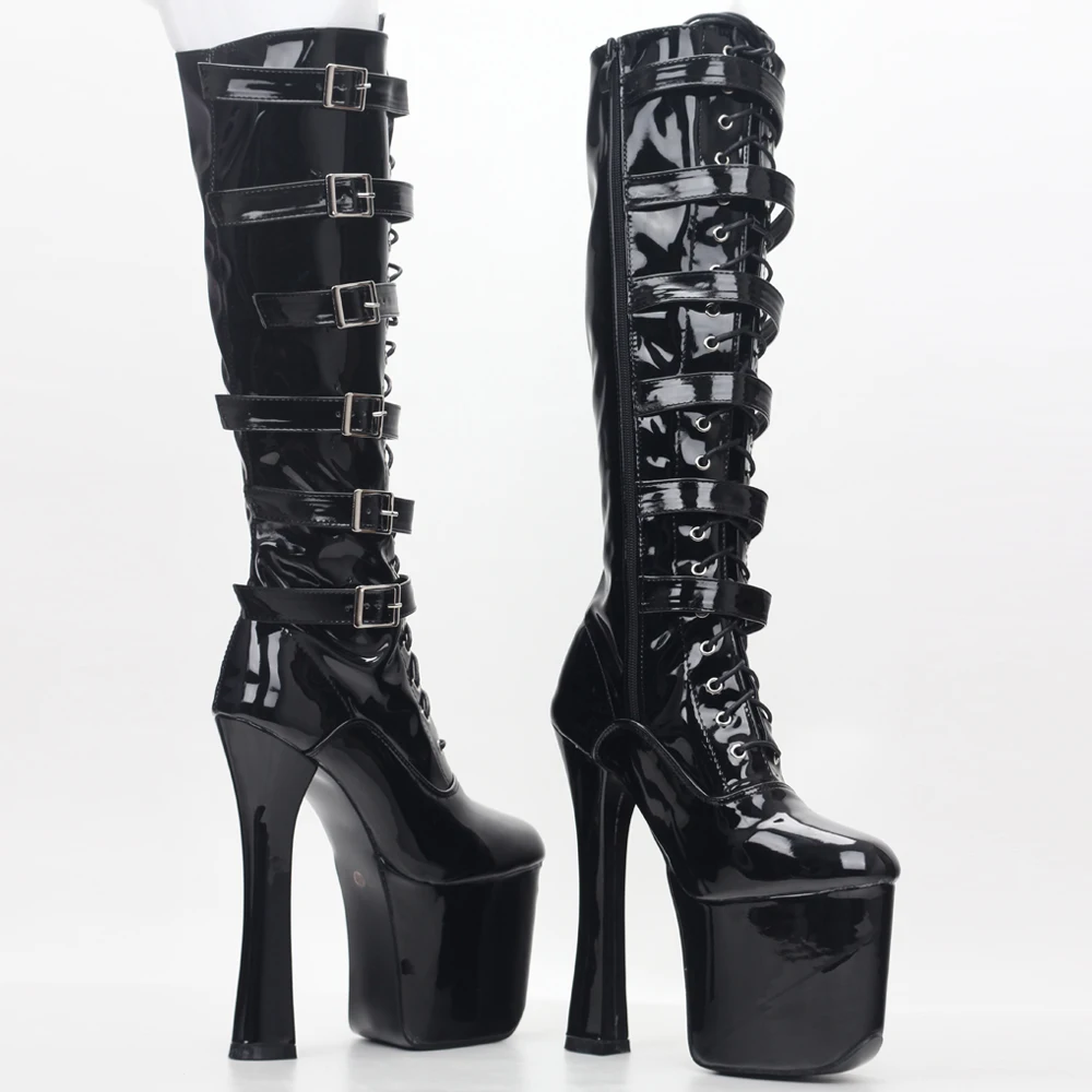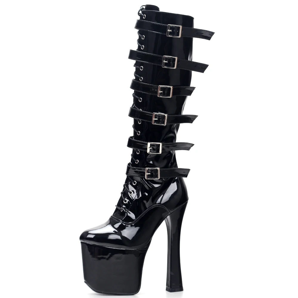 Женские сапоги jialuowei, черные лакированные сапоги на высоком каблуке, со шнуровкой и пряжкой, для танцев