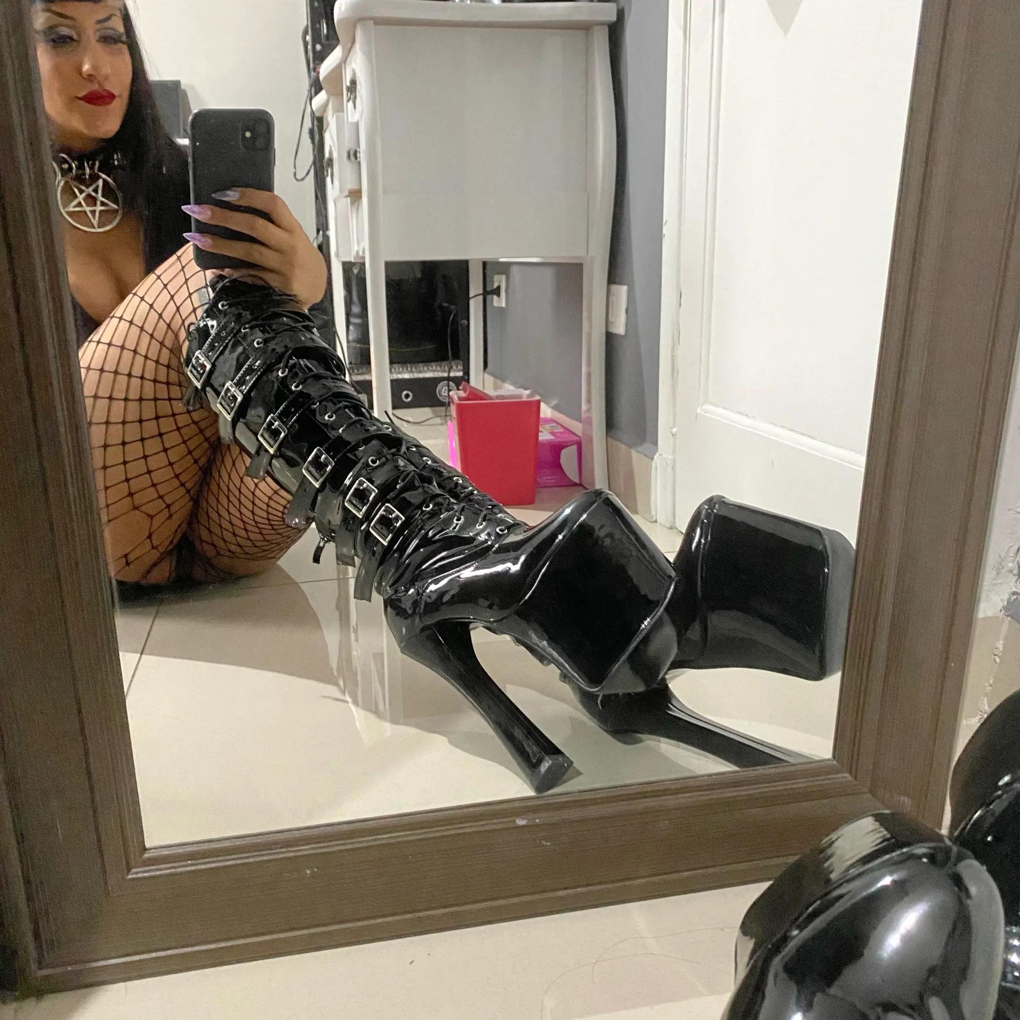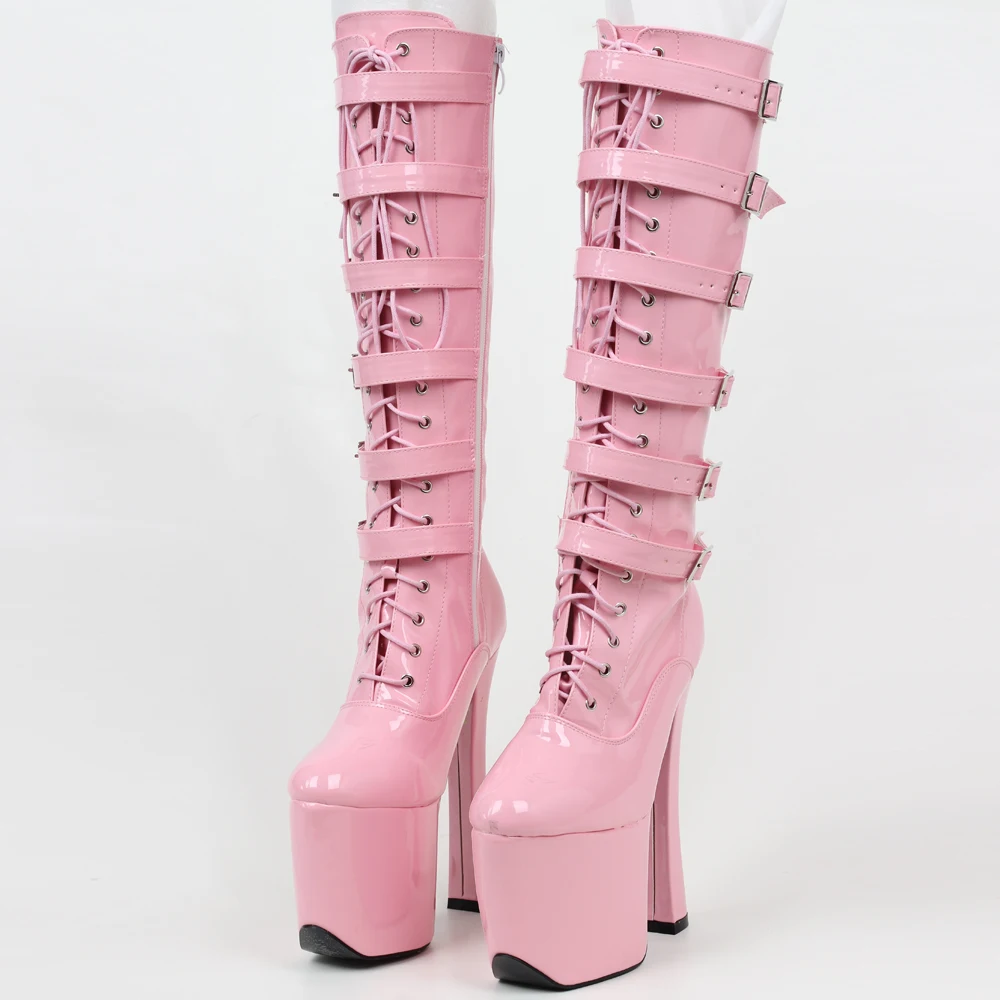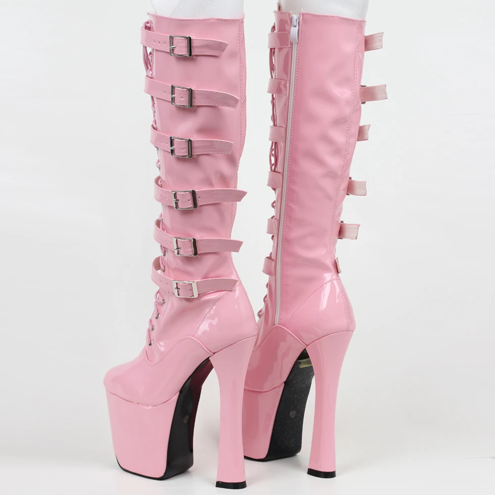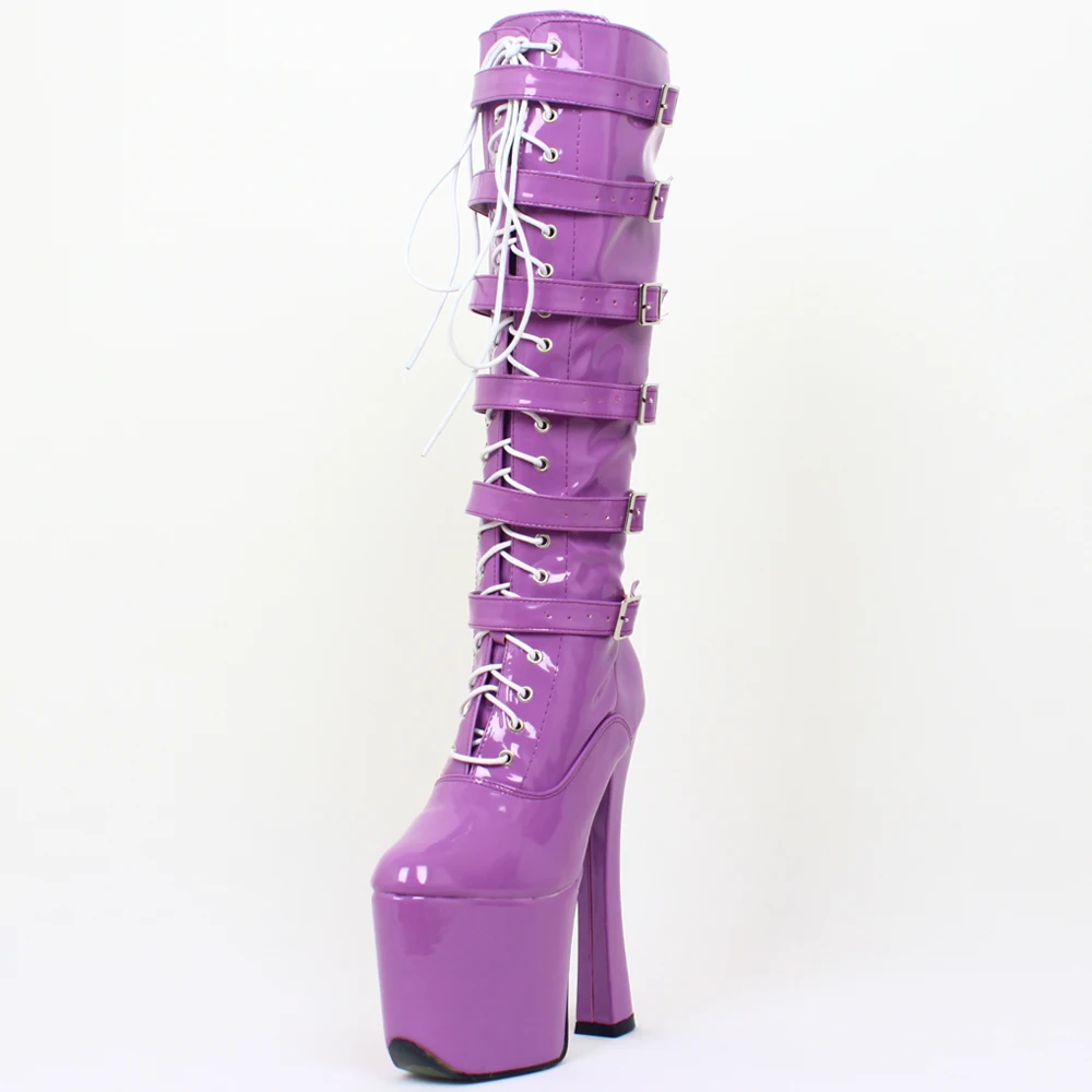 Женские сапоги jialuowei, черные лакированные сапоги на высоком каблуке, со шнуровкой и пряжкой, для танцев