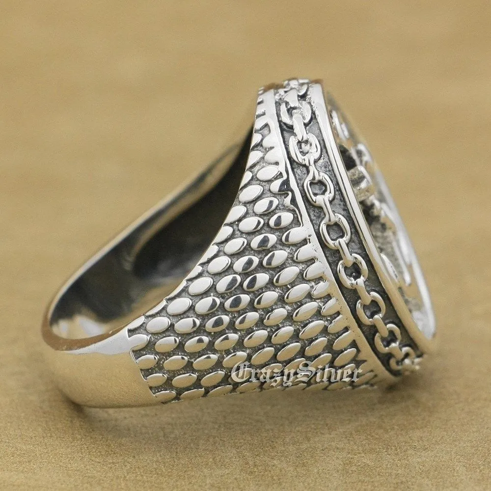 Это уникальное украшение станет прекрасным подарком для любого случая!Состояние:Новинка ручной работы с идеальной отделкойМатериал:Серебро 925 пробы высшего качества, Толстый и тяжелый!(Марка 925 торговой марки)(Мы гарантируем, что это серебро 925 пробы, если не полный возврат средств!)Размер лица:Прибл.23,5 мм x 19 ммВес:Прибл.14,5 гРазмер США:#7 ~ #15;