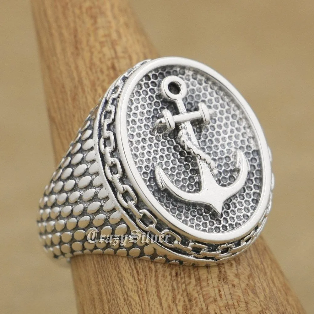Кольцо мужское в виде якорной цепи, серебро 925 пробы, 9 Вт 023, размер США 7 15