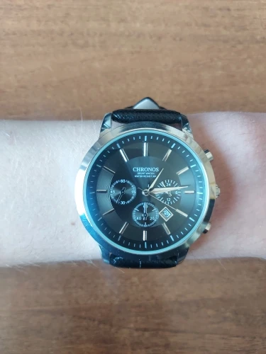 Часы полный шлак, механизм не японский, стрелки хронографа нарисованные, ремешок сделан из клиёнки, пустая трата денег!