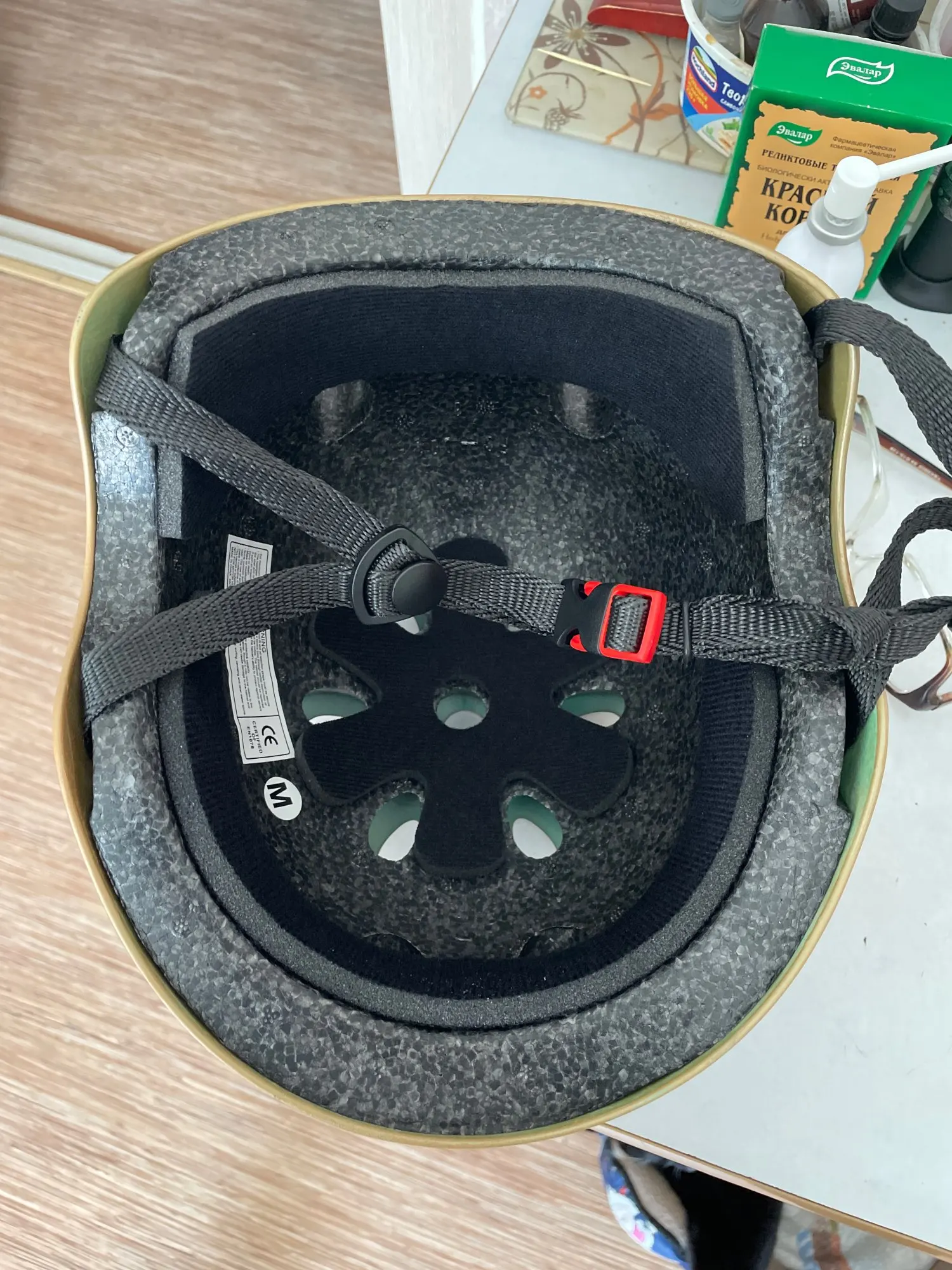 Товар неисправен-ремешок для шлема сшит неправильно-скручен. В описании товара показан товар с правильно пришитым ремнем для подбородка. Продавец обманет и говорит, что ремешок для подбородка специально скручен. Продавец лжёт и избегает ответа-почему в описании товара есть качественный продукт, но товар с дефектом доставляется. Избегайте продавца. Я не рекомендую.