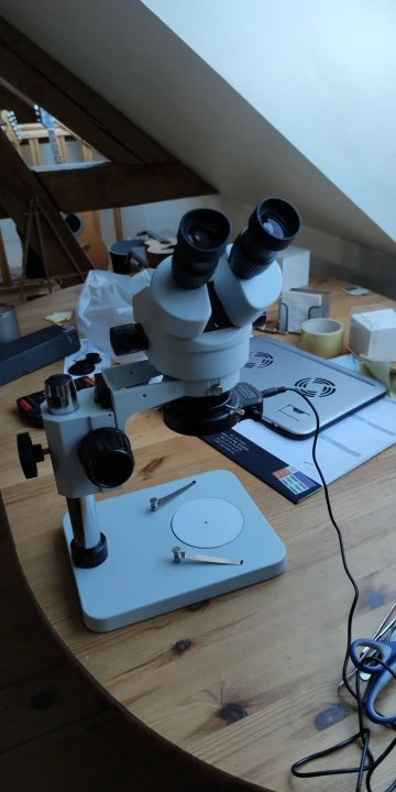 Микроскоп очень хороший. Отличное качество изображения. 0.5x идеальный размер для пайки. Я переворачиваю основание и держу его на спине и на нем сидю вес, так что я могу работать прямо на поверхности стола. Только отрицательный светодиодный индикатор. Он может быть очень ярким, но свет от светодиода не очень хорош для просмотра небольших компонентов. Свет слишком синий или что-то другое. Я добавлю свой собственный свет. Кроме того, его большой объем, настоятельно рекомендую