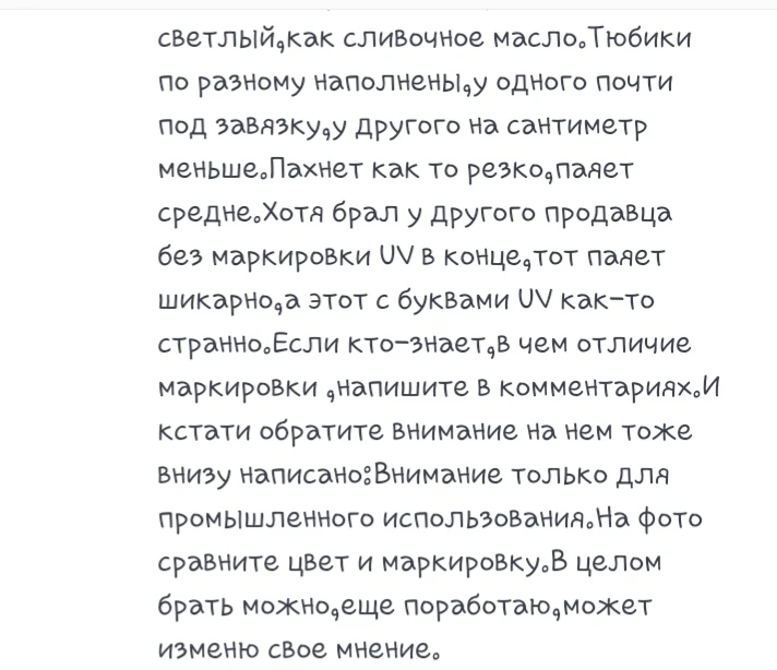 В Украину флюс доехал довольно быстро - Укрпочтой .Касаемо качества у меня есть с чем сравнить, брал Nc 559 asm lot:082-183 в магазине Eruntop (тоже на али) ~ 8 месяцев назад за 2 шприца 3,2$ ; относительно этого есть некоторое отличие:( верхний старый ,книзу новый фото) -запах ,резкий даже какой-то вонючий , лучше не вдыхать ■ канцероген ■. -консистенцыя ,жидковатый разведённый оригинал《 возможно вазелином или ещё каким-то дерьмом я .х.з.(оно и не удивительно с такой то ценой 1,18$) - даже наклейки на перекос китаец друг в подвале криво наклеил. -наполнение на 2/3 Медь вроде лудит ощутимо ниже качества,но когда хороший качественный 'фото верхний' заканчивается приходиться брать всякий шлак .Заплатил за 2 штук 2,36 $ и полностью согласен с чужим отзывом. Оценка 4,2.