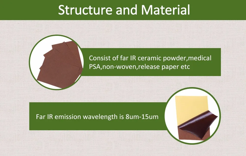 Структура и материал:Состоит из керамического порошка far IR, медицинского PSA, нетканого материала, бумаги для выпуска и т. д.