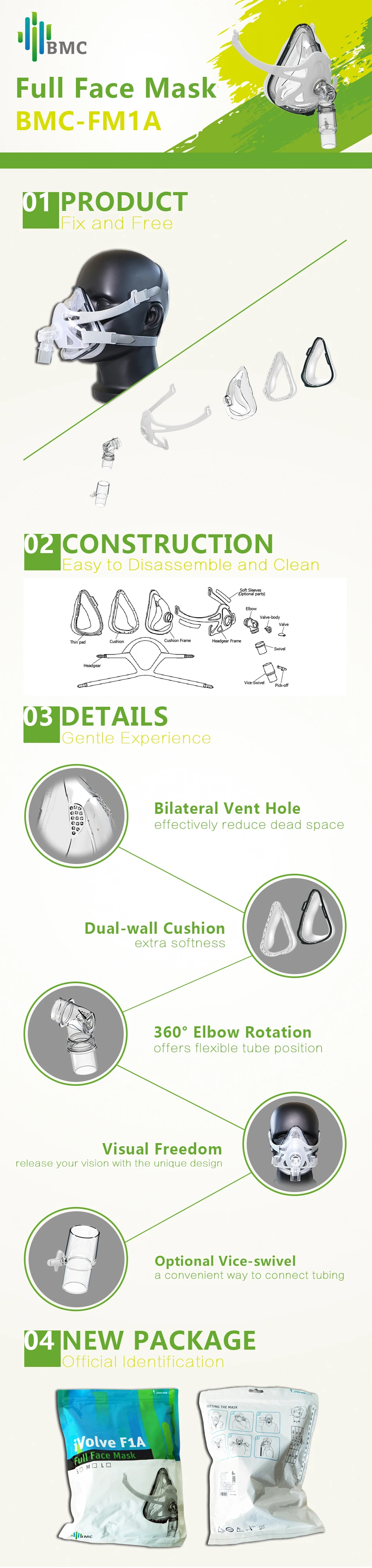 BMC F1A маска для лица с бесплатным головным убором для CPAP Auto CPAP BiPAP Респиратор Размер S M L храп терапия интерфейс